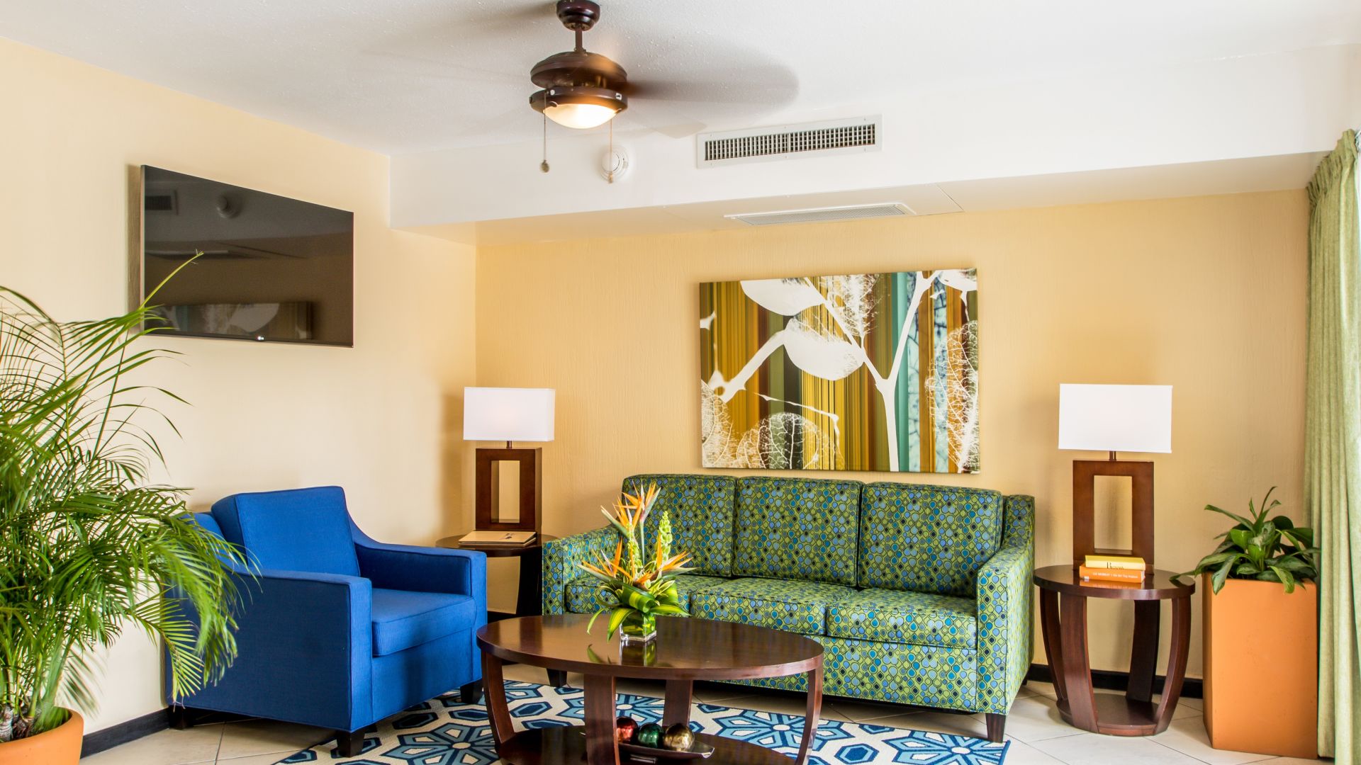 Vybavenie izieb: kúpeľňa s WC, sušič vlasov, klimatizácia, kuchynský kút s chladničkou, TV, telefón, trezor, žehlička a žehliaca doska, minibar, balkón / terasa s výhľadom do záhrady alebo na more. Apartmány majú naviac oddelenú spálňu.