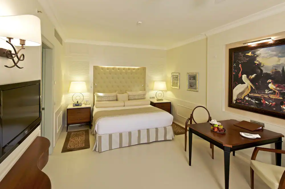 Vybavenie izieb: v základnej cene izba Suite. Izba o veľkosti 33 m2 má k dispozícii posteľ typu King size (200x200 cm) alebo 2 Double beds (135x200 cm), kúpeľňa s WC a sušičom vlasov, oddelená vaňa a sprcha, župan a papuče, žehliaca súprava, klimatizácia, ventilátor, TV, trezor, minibar, kávovar, adaptér, Wi-Fi pripojenie a terasa/balkón s výhľadom do záhrady. Hosťom je k dispozícii komorník, služba rozostielania postelí a 24-hodinová izbová služba.