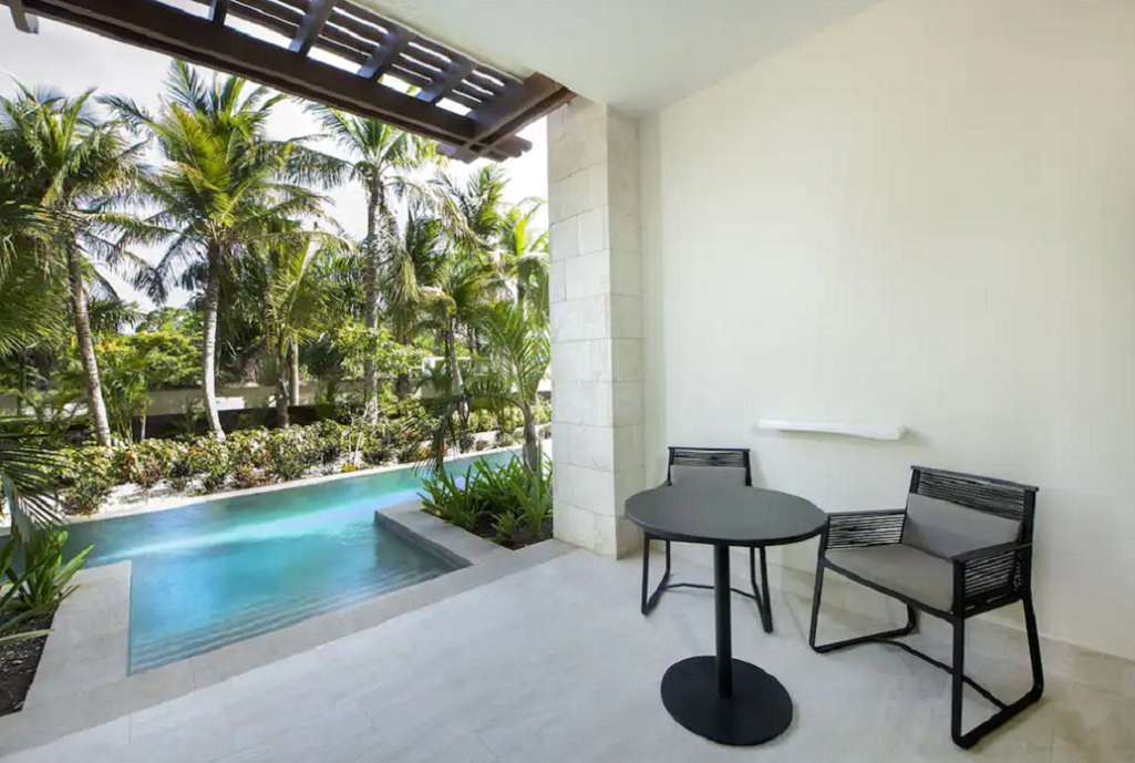 Izby Junior Suite Swim Up s priamym vstupom k bazénu z terasy (11 m2) majú k dispozícii posteľ typu King size (180 x 200 cm) alebo 2 queen beds postele (150 x 200 cm), ďalej kúpeľňu s WC a sušičom vlasov, klimatizáciu, gauč, satelitný TV, telefón, trezor, terasu. Na izbe je možné ubytovať maximálne 3 dospelé osoby, prípadne 2 dospelé osoby a 2 deti.