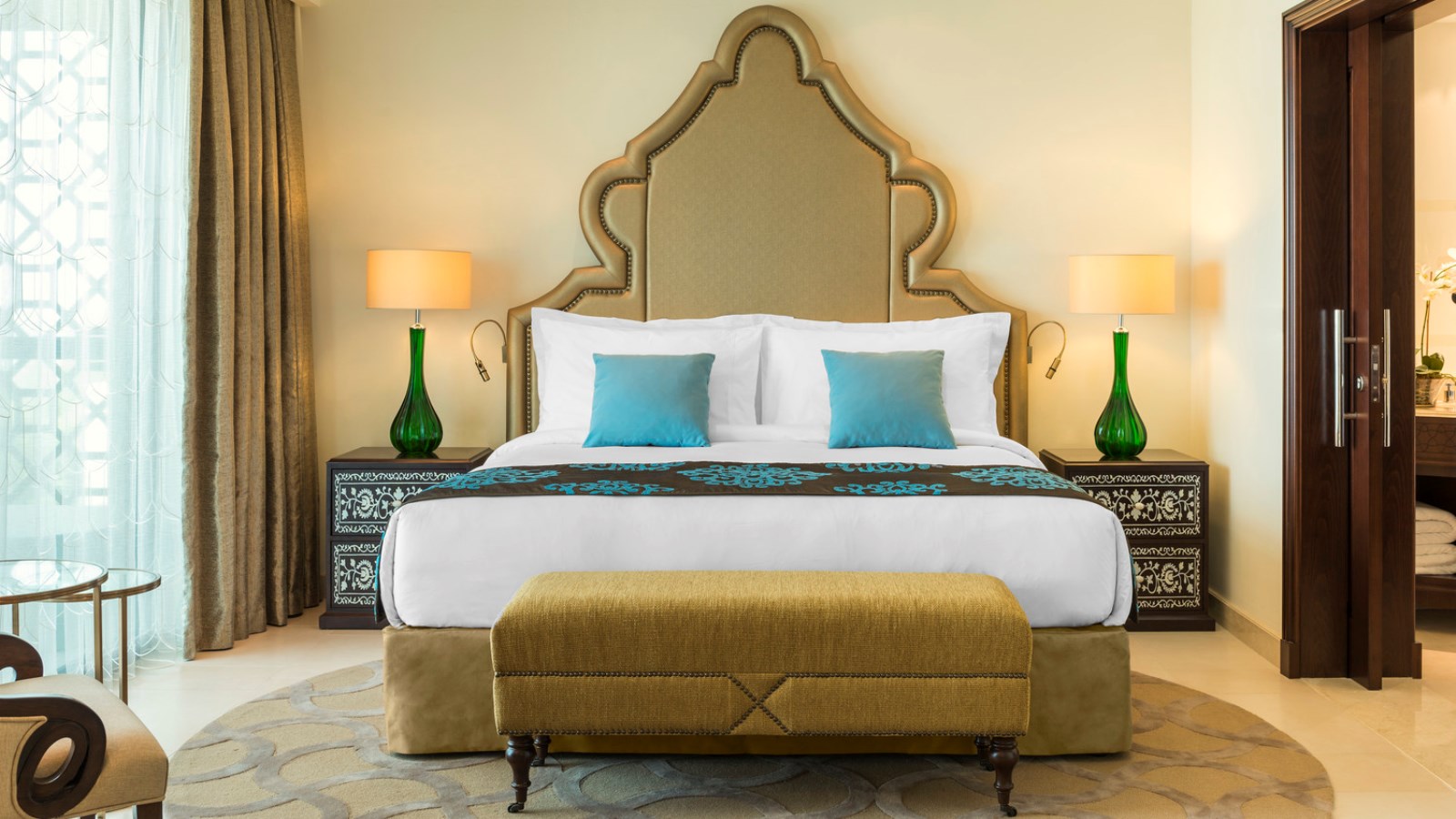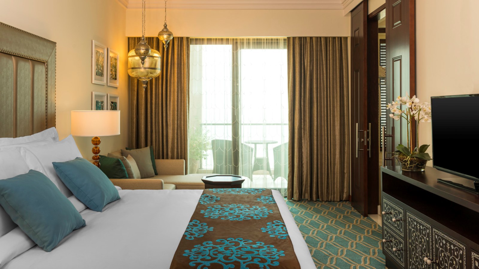 Luxusne zariadené izby v príjemných farbách s prvkami tradičného arabského štýlu majú balkón so sedením a priamy výhľad na more. K štandardnému vybaveniu patrí gauč, klimatizácia, 40-palcová HD LCD TV, iPod/iPhone dock, rádio, minibar za poplatok, trezor, kávovar Illy, set na prípravu čaju/kávy, žehlička, žehliaca doska, Wi-Fi zdarma, luxusná mramorová kúpeľňa s dvomi umývadlami, vaňou, sprchou, sušičom vlasov, bidetom, županmi, papučami a značkovou kozmetikou.