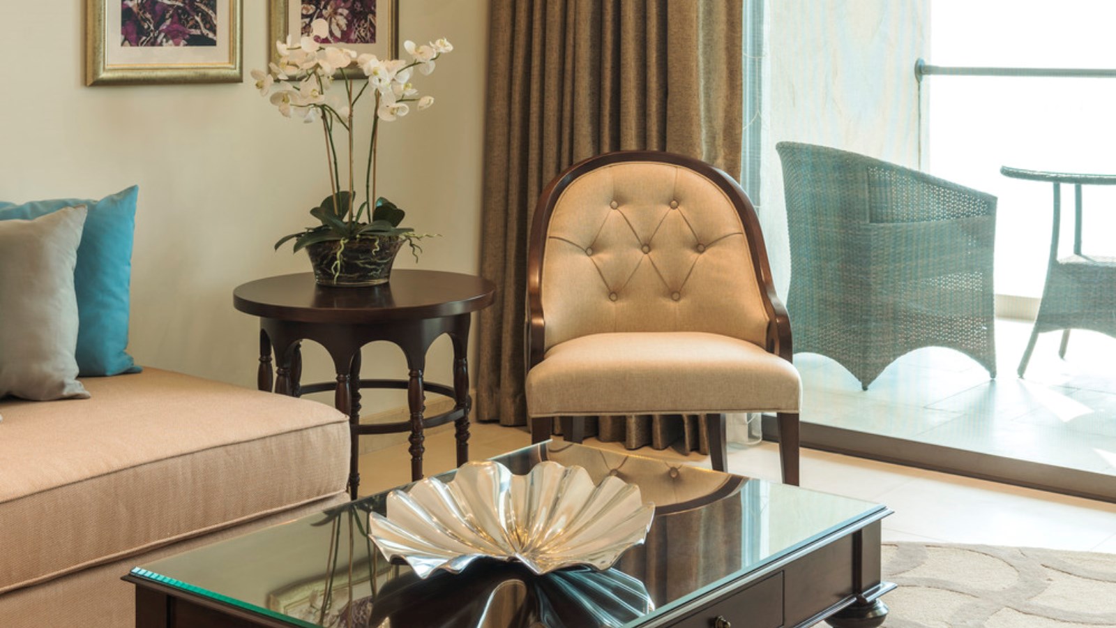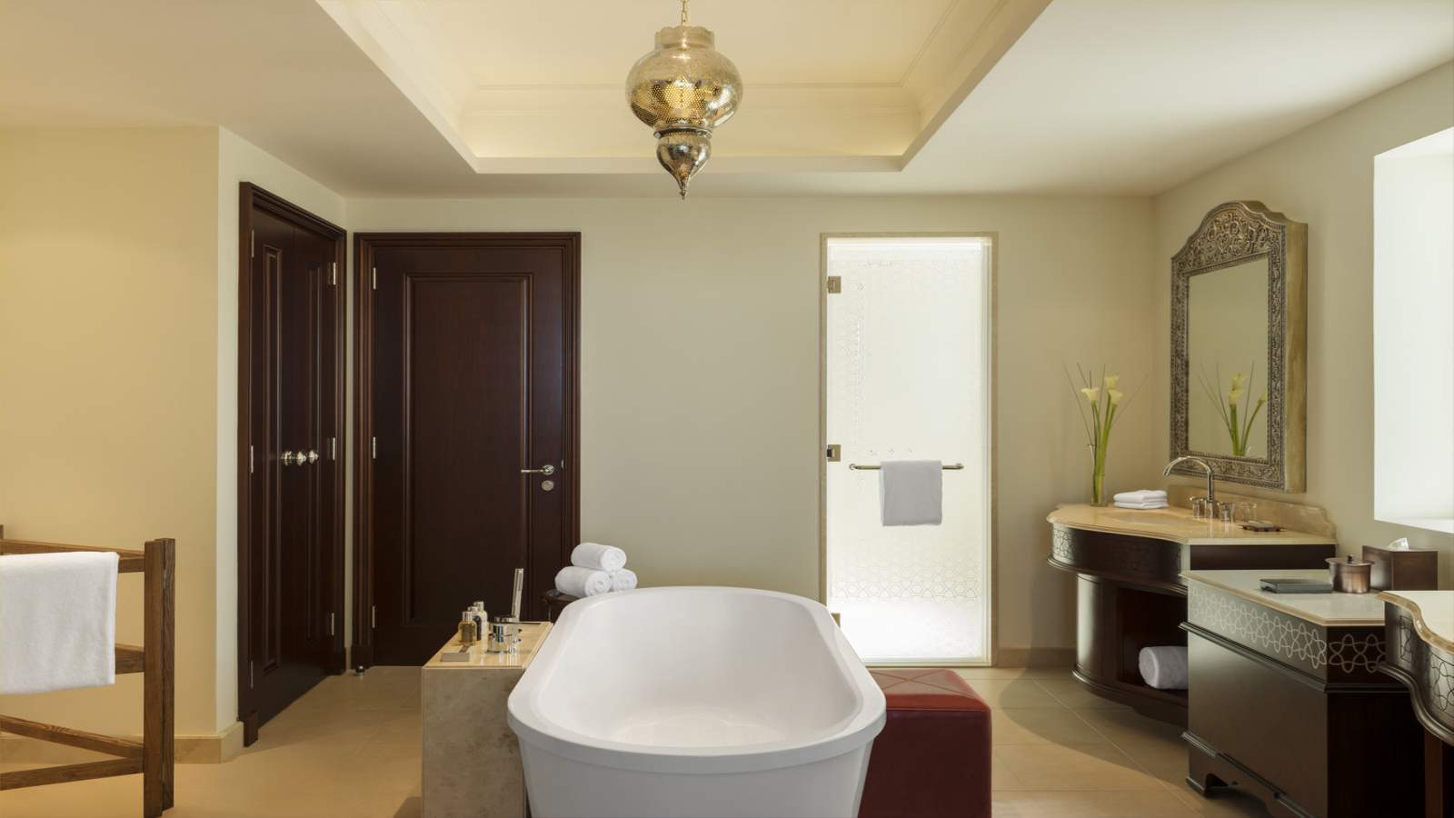 Obrovská luxusná suita má oddelenú spálňu, pracovňu s pracovným stolom a obývačku s gaučom, jedálenským kútom, balkón/terasu s výhľadom na more. K prepychovému zariadeniu s prvkami tradičného arabského štýlu patrí klimatizácia, dve 40-palcové HD LCD TV, iPod/iPhone dock, rádio, minibar za poplatok, trezor, kávovar Illy, set na prípravu čaju/kávy, žehlička, žehliaca doska a Wi-Fi zdarma. Suity majú luxusnú kúpeľňu s dvomi umývadlami, samostatne stojacou vaňou, sprchovým kútom, sušičom vlasov, bidetom, županmi, papučami a značkovou kozmetikou.