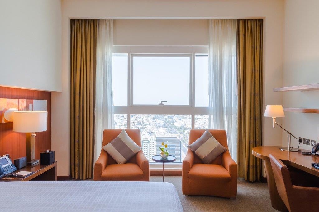 Hotel sa nachádza v centre Abú Dhabi v obchodnej štvrti a nadväzuje na nákupné centrum Al Wahda.