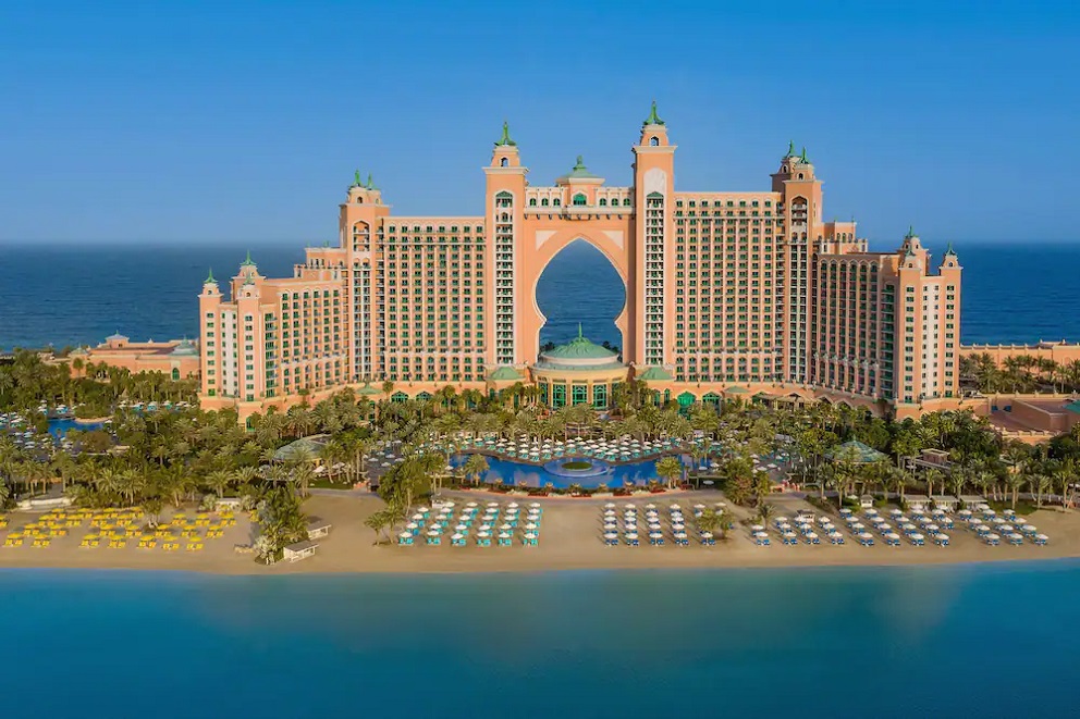 Jeden z najluxusnejších dubajských hotelov bol postavený na ostrove Palm Jumeirah Island, čo je najväčší umelo vybudovaný ostrov na svete. Hotel je obklopený z oboch strán súkromnou plážou, ich dĺžka činí 1,5 km. Hotel ponúka svojim hosťom 1.539 luxusných izieb a veľký Aquaventure Waterpark. .