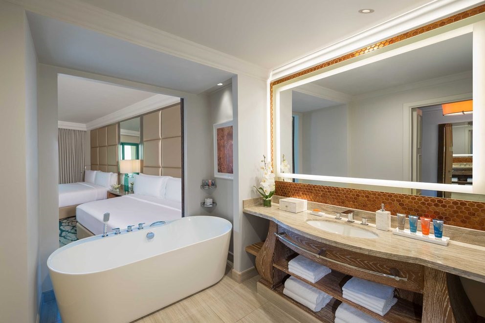 Suite s výhľadom na arabský záliv s oddelenou spálňou a obývacou časťou. Spálňa je vybavená king-size posteľou, v obývacej časti sa nachádza pohovka, jedálenský stôl, pracovný stôl a kuchynský kút. Priestranná kúpeľňa je vybavená sprchou a veľkou samostatne stojacou vaňou. Nechýba TV, set na prípravu kávy a čaju, fén na vlasy, zariadený balkón a Wi-Fi pripojenie. V izbe je možné ubytovať 2 dospelých a 2 deti do 14 rokov alebo max. 3 dospelých.
