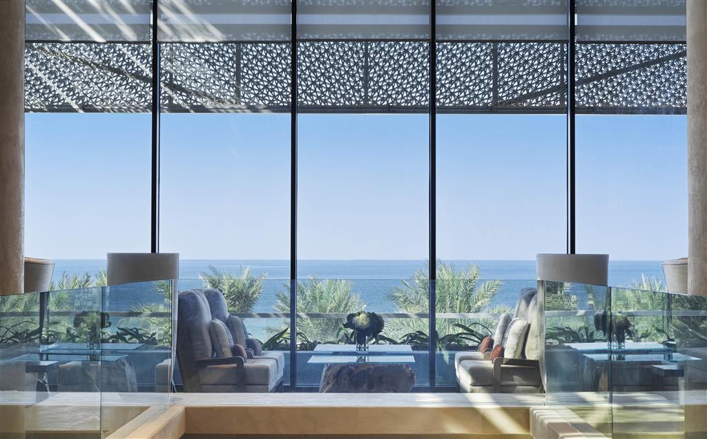 Vstupná hala s recepciou, hlavná reštaurácia s panoramatickým výhľadom na more, niekoľko reštaurácií a la carte, 3 bazény (Infinity bazén, súkromný bazén a detský bazén), bar pri bazéne, lehátka a slnečníky zdarma.
