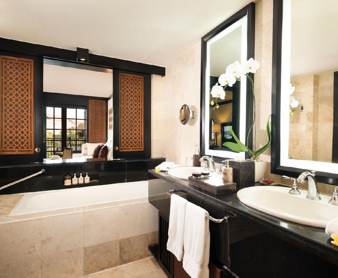 Vybavenie izieb: kúpeľňa s WC, klimatizácia, balkón/terasa, satelitná TV, set na prípravu kávy a čaju, sušič vlasov, župan, papuče, telefón, trezor, minibar (za poplatok). V základnej cene je kalkulovaná izba typu Deluxe.