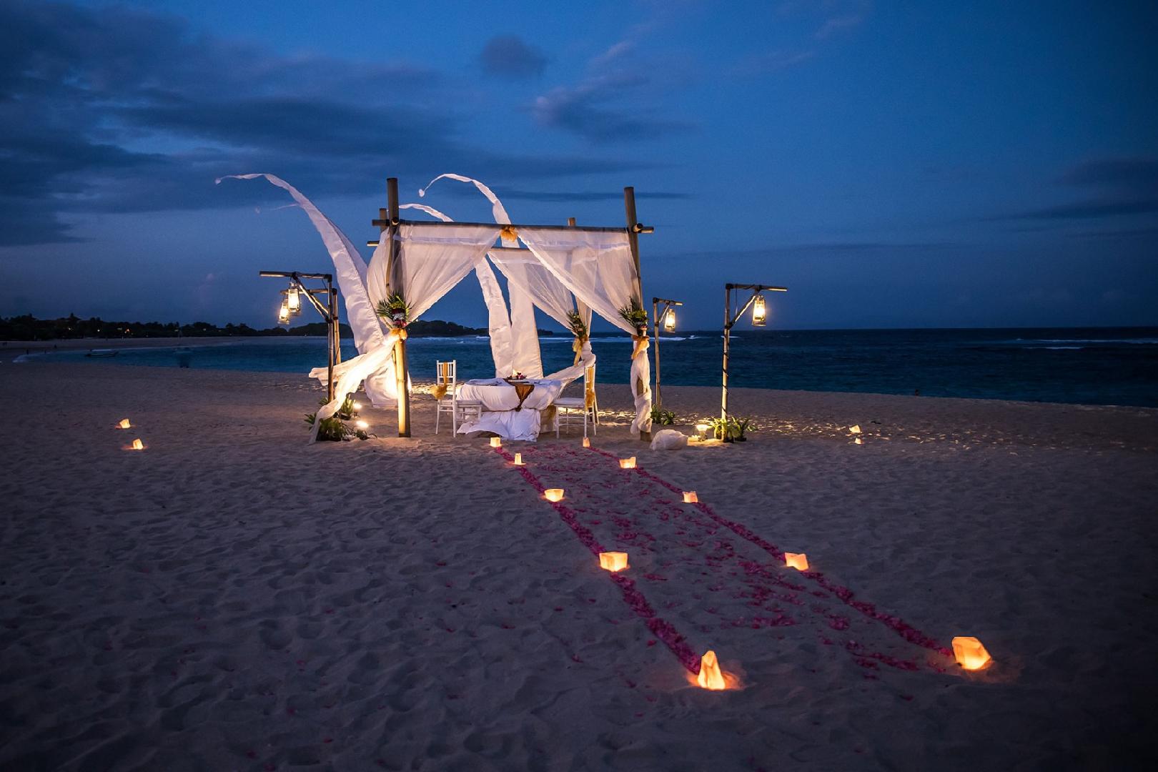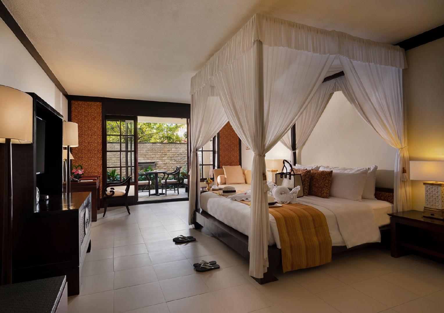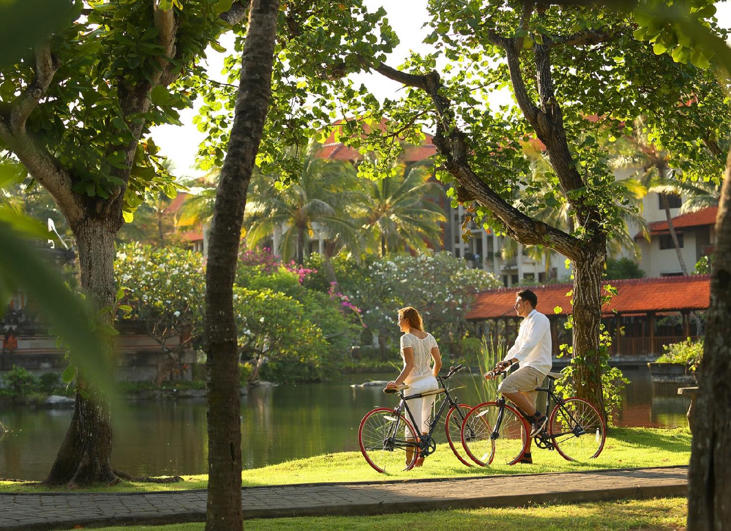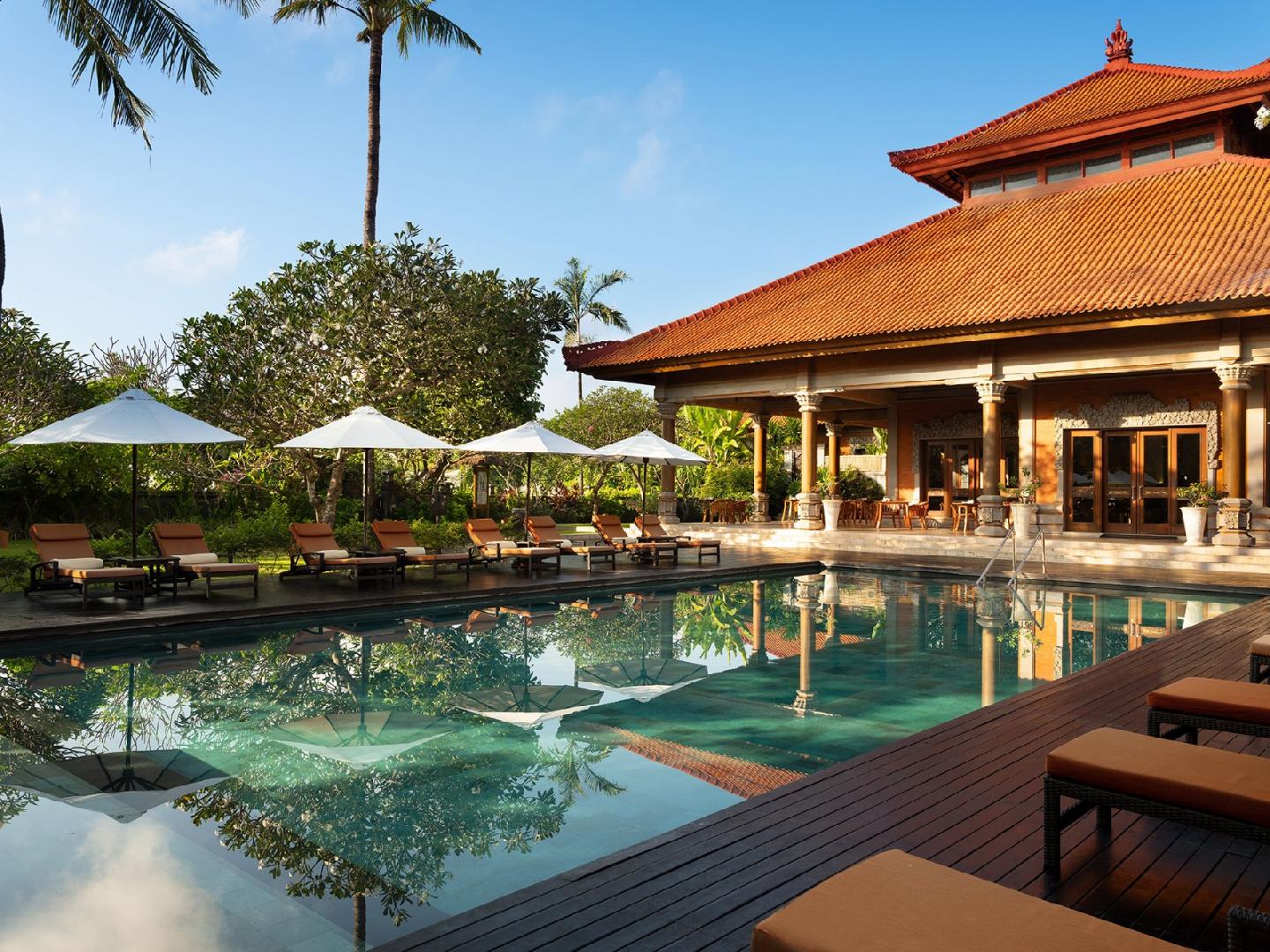 Popis: tento luxusný hotel s 537 izbami je postavený v balijskom štýle, svojou architektúrou pripomína vodný palác a svojou magickou atmosférou, pohostinnosťou a dobrosrdečnosťou Vám zabezpečí úžasný pobyt plný pokoja, relaxu a nezabudnuteľných zážitkov. Nachádza sa pri pláži Nusa Dua. Od letiska je vzdialený cca 25 minút jazdy autom.
