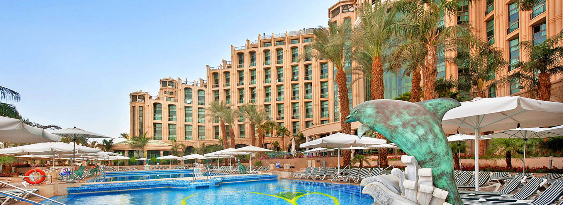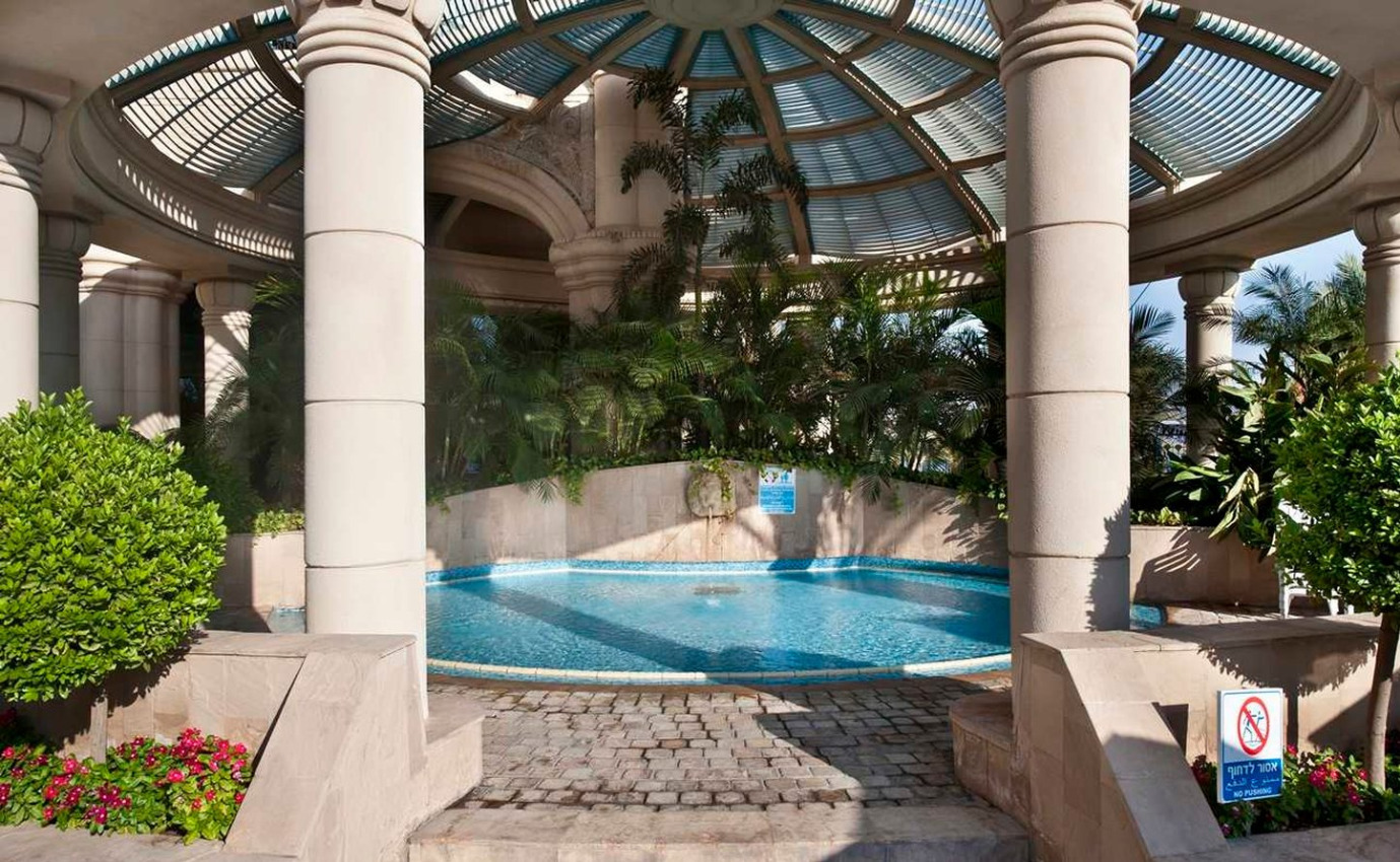 Popis: moderný luxusný hotel, ktorý bol postavený ako vysnívaný biblický palác kráľovnej zo Sáby, sa nachádza v hotelovej časti Eilat, priamo na promenáde pri Severnej pláži na brehu Červeného mora. Hotel poskytuje prekrásny výhľad na Červené more, hory a krásnu lagúnu. Hotel ponúka 481 luxusných nádherne zariadených izieb.