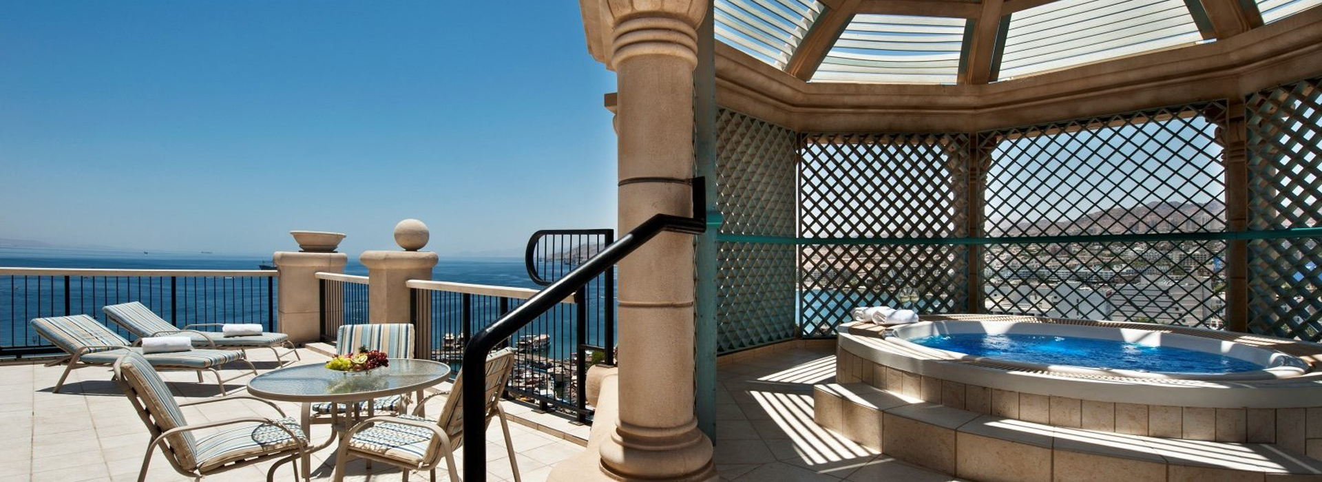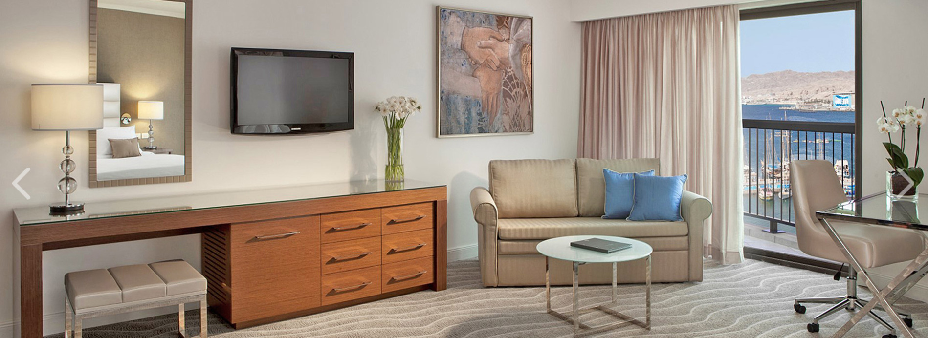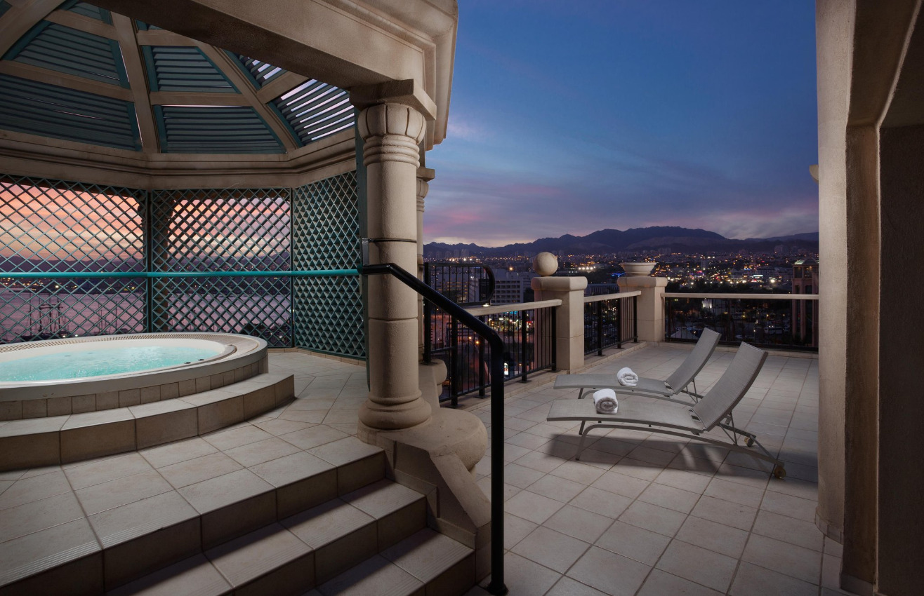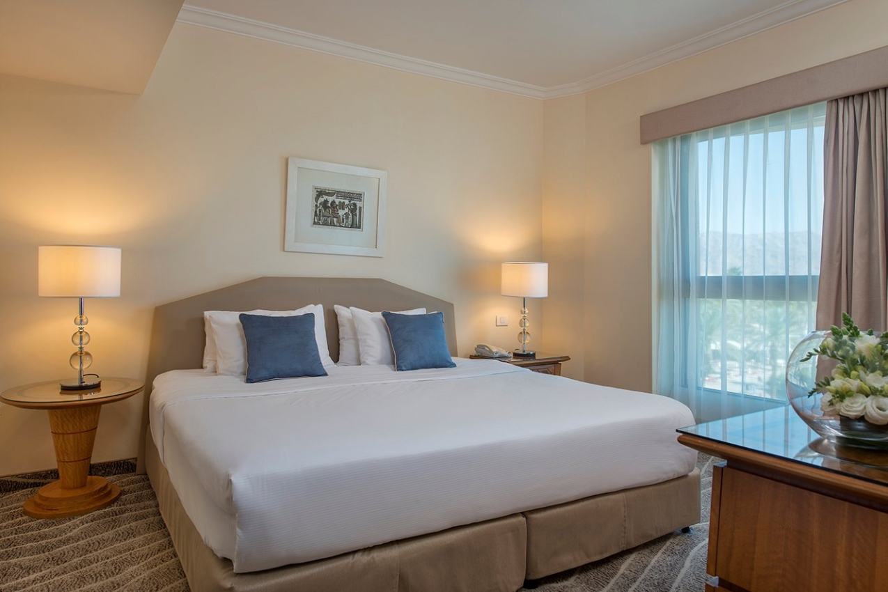 Moderný luxusný hotel, ktorý bol postavený ako vysnívaný biblický palác kráľovnej zo Sáby, sa nachádza v hotelovej časti Eilat, priamo na promenáde pri Severnej pláži na brehu Červeného mora. Hotel poskytuje prekrásny výhľad na Červené more, hory a krásnu lagúnu. Hotel ponúka 481 luxusných nádherne zariadených izieb.