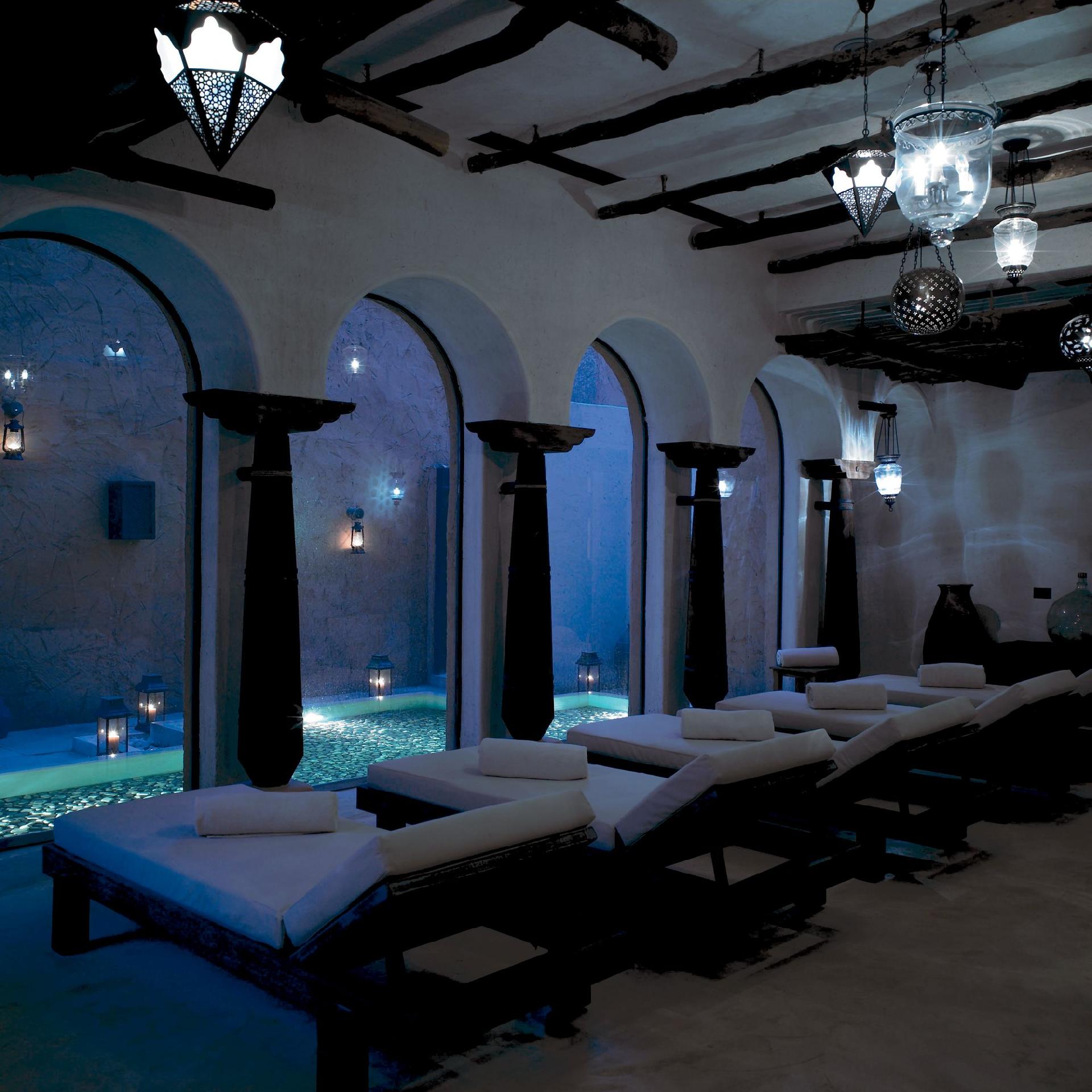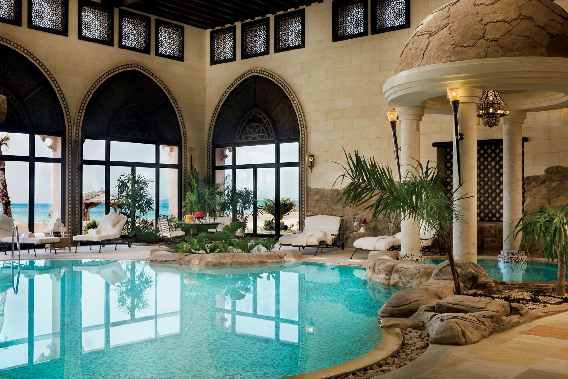 Vybavenie: vstupná hala s recepciou 24/7, 6 reštaurácií, 3 bary/kaviarne, tradičný arabský trh souq, obchody, bazény, fotnána, záhrada, jacuzzi, sauna, wellness centrum s 23 miestnosťami na rôzne procedúry, salón krásy, salón pre mužov, fitness centrum, masáže, konferenčné centrum, business centrum, zmenáreň, práčovňa, denná tlač, 24 hodinový servis, detský klub Ritz Kids.