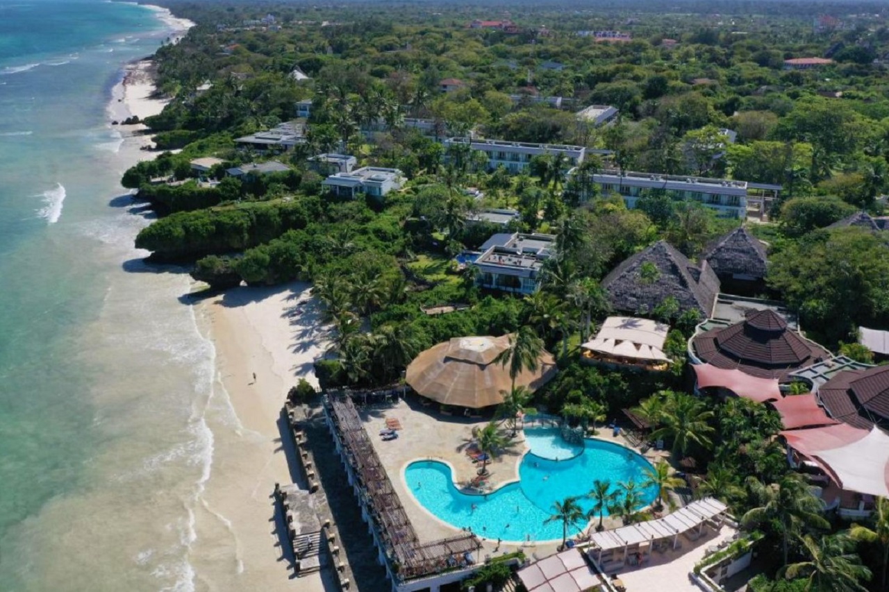 Popis: zrekonštruovaný, kvalitný, príjemný hotel so 198 izbami, vhodný pre veľmi náročných klientov, sa nachádza priamo pri pláži, cca 1 hod jazdy od letiska v Mombase v stredisku Diani. Je obklopený krásnym prostredím a nádhernou tropickou záhradou. Hotel ponúka ubytovanie rôznych kategórií, od izieb v hlavných budovách umiestnených v záhrade až po privátne vily ležiace na koralových útesoch nad oceánom.