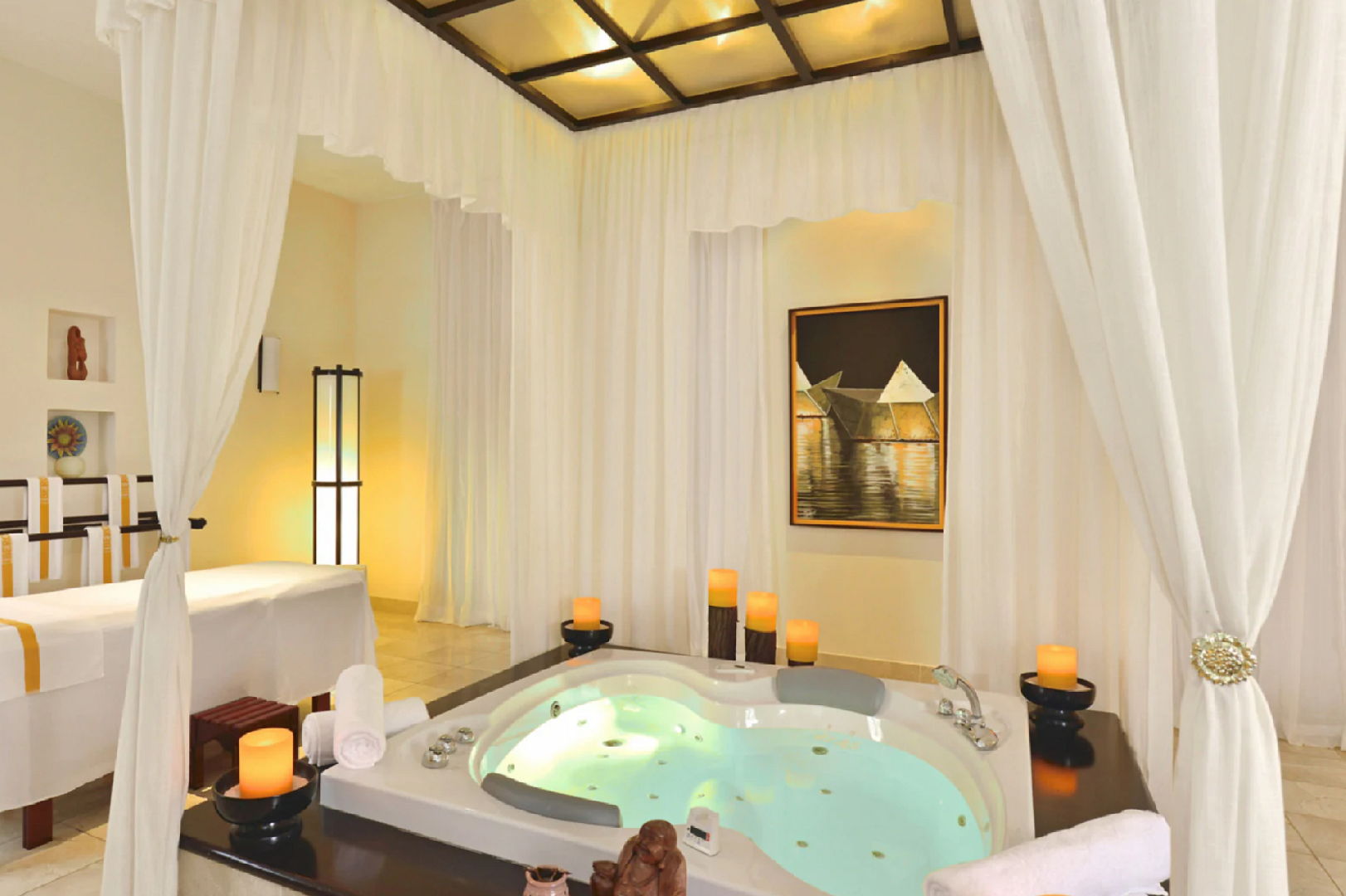 Klimatizované pokoje s balkonem jsou zařízené v koloniálním stylu. Na pokoji nechybí telefon, televize, DVD a CD přehrávač a domácí kino. Pro pohodlí klientů je k dispozici žehlička, velká koupelna s vanou, sprchou a fénem. K osvěžení poslouží minibar či kávovar. Nedílnou součástí apartmánů je trezor.