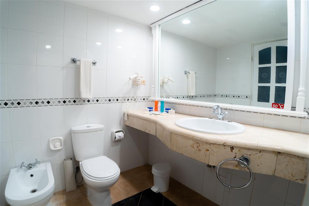 Dvojlôžková izba: kúpeľňa/WC (sušič vlasov), klimatizácia, TV/sat., telefón, minibar, trezor, balkón alebo terasa.