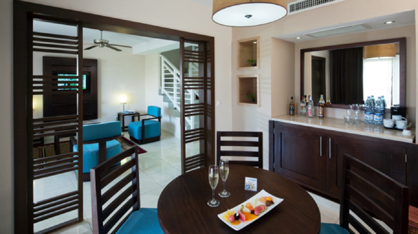 Izby Junior Suite majú k dispozícii jednu veľkú posteľ typu King size, obývaciu časť s gaučom a kúpeľňu s WC. Disponujú samozrejme klimatizáciou, stropným ventilátorom, satelitnou TV, trezorom, kávovarom, minibarom, 24-hod. room servisom, concierge a balkónom/terasou so sedením. Na izbe je možné ubytovať 2 dospelé osoby.