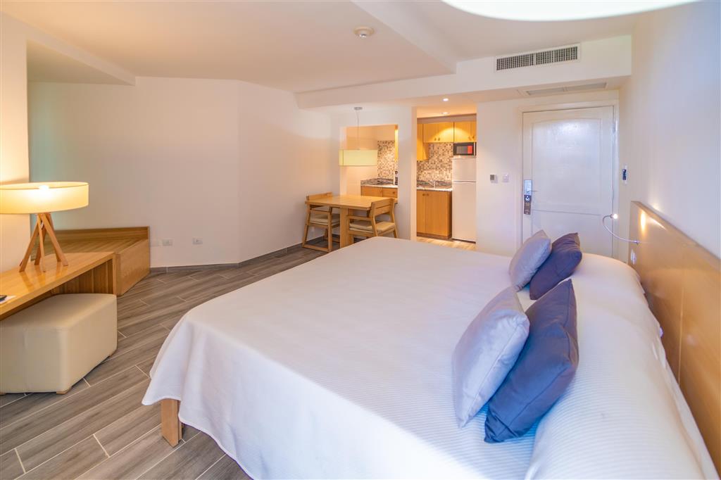 Junior suita: priestrannejšie. Súčasťou je obývací priestor s gaučom, kuchynka (s mikrovlnkou a chladničkou), jedálenský kút, balkón alebo terasa.