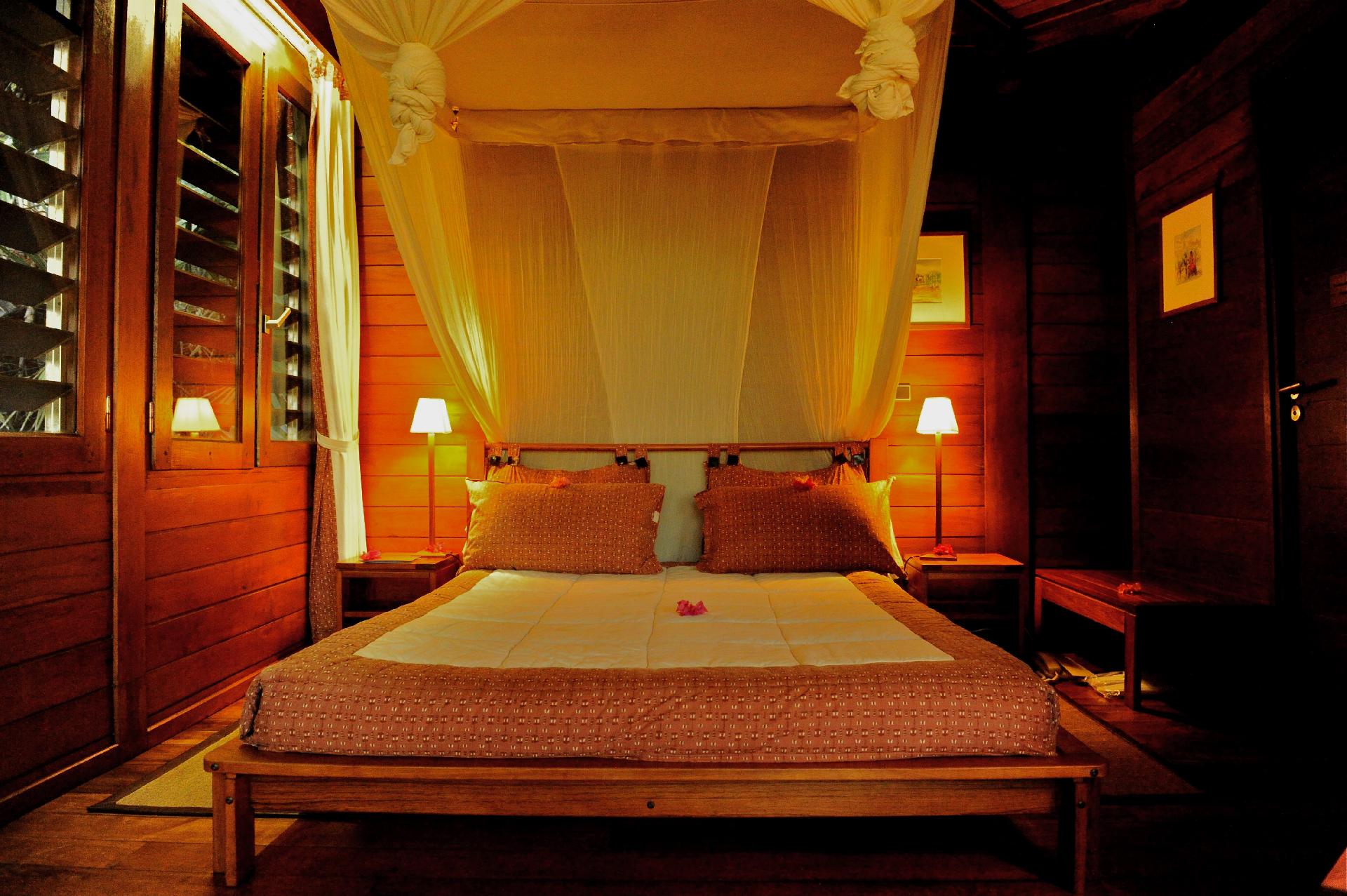 Vybavenie izieb: dvojposchodová vila z palisandrového dreva a strechou z palmového lístia. V prízemí sa nachádza jedáleň, spálňa, odpočinkový kút, kúpeľňa s WC. V poschodí potom pracovňa, ktorá môže slúžiť ako spálňa pre deti. Klimatizácia, kávovar, minibar, terasa s výhľadom na more.