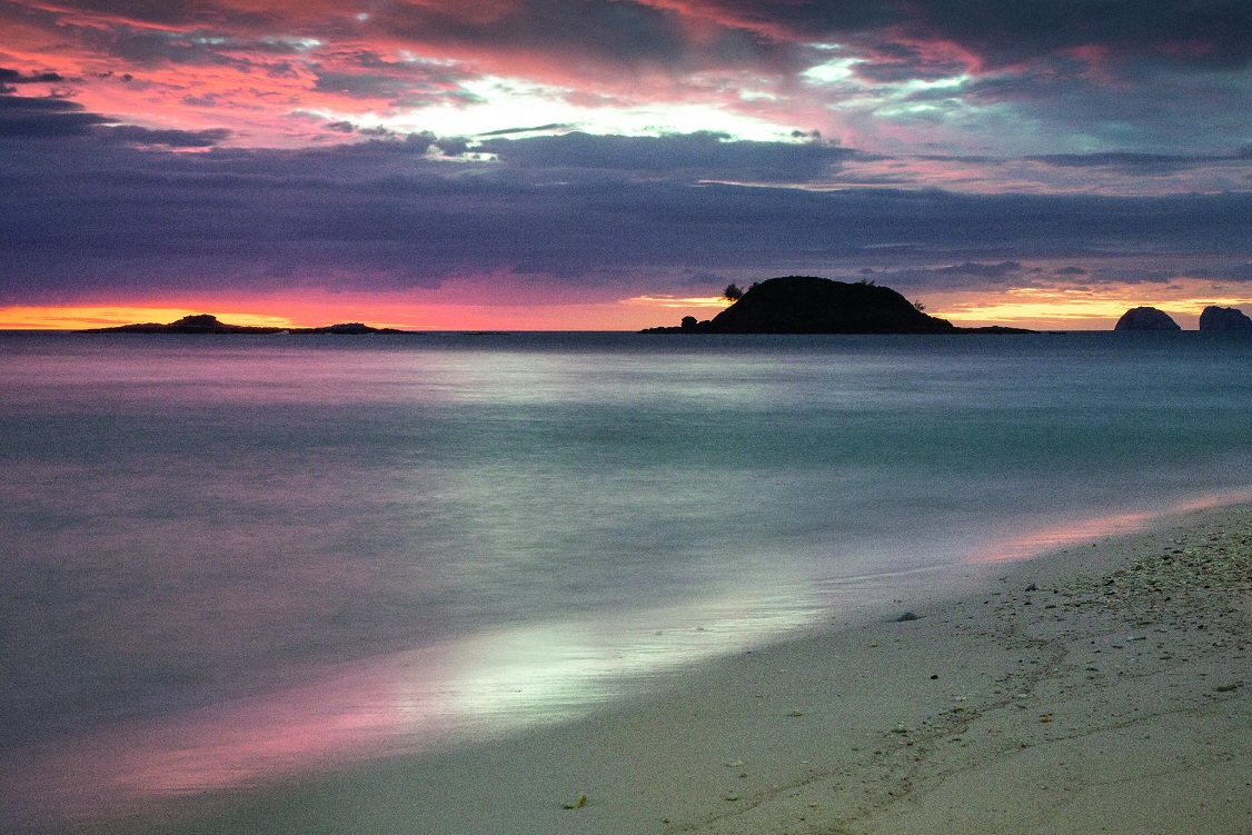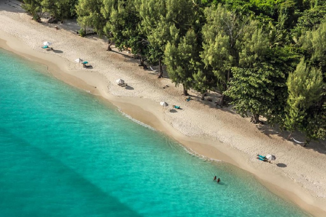 Pláž: tri pláže s belostným pieskom ležiace na severe, juhu a západe ostrova o dĺžke 570 metrov.