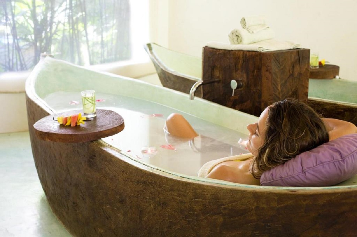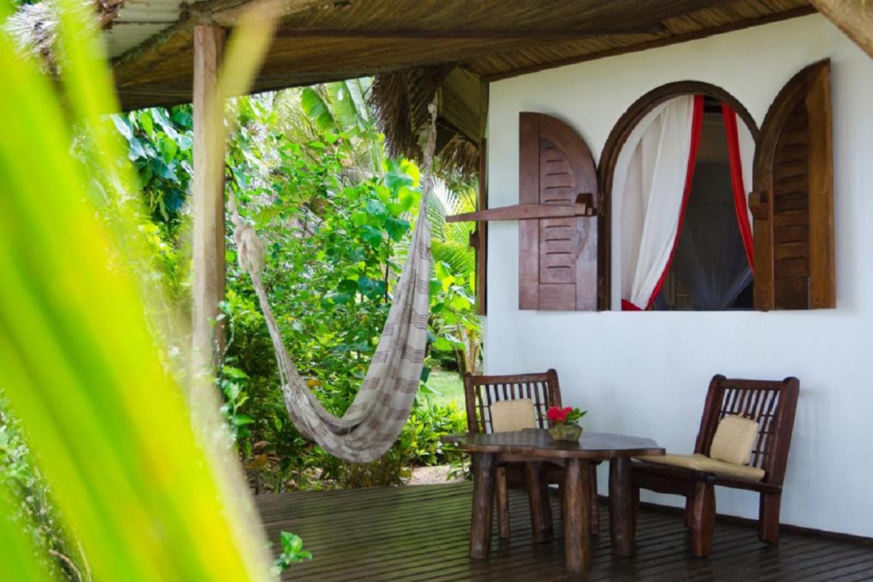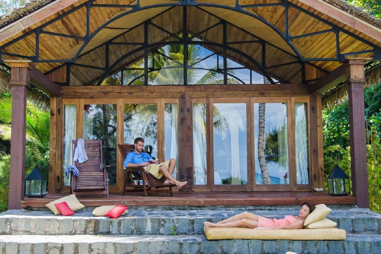 Popis: komfortný štýlový hotel tvorený 15 bungalovmi postavenými z prírodných materiálov - kameň a drevo v palmovom háji.