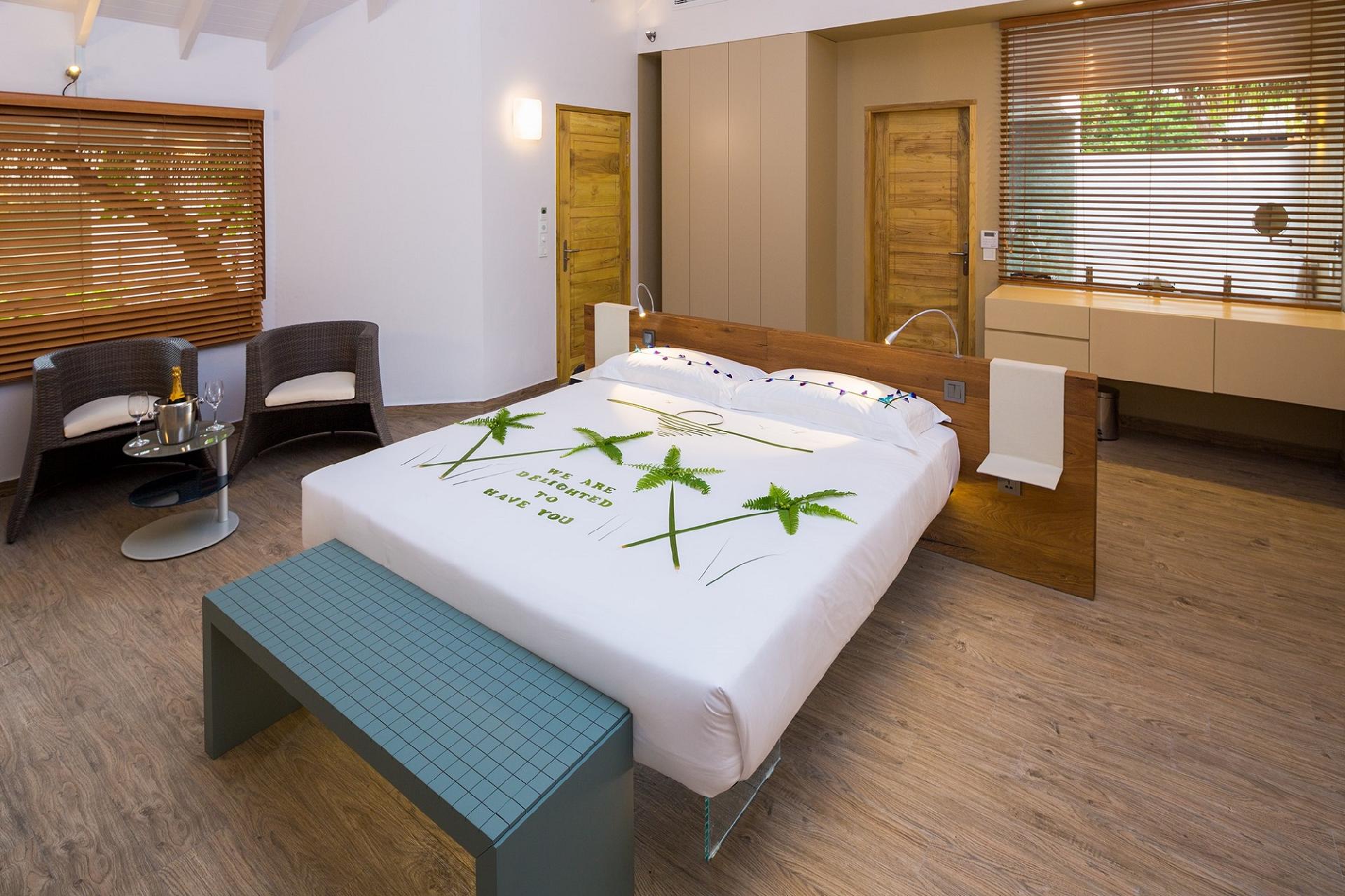 Najväčšia vila na ostrove s dvomi spálňami, obývacou časťou, vonkajšou jedálňou a privátnym bazénom. Nachádza sa priamo pri pláži a ponúka výhľad na tyrkysové more. V obývacej časti sa nachádza veľká pohovka, barový stôl a minibar. Kúpeľňa je otvorená a priestranná, ukrytá v súkromnej záhradke. Wi-Fi pripojenie je k dispozícii zdarma.