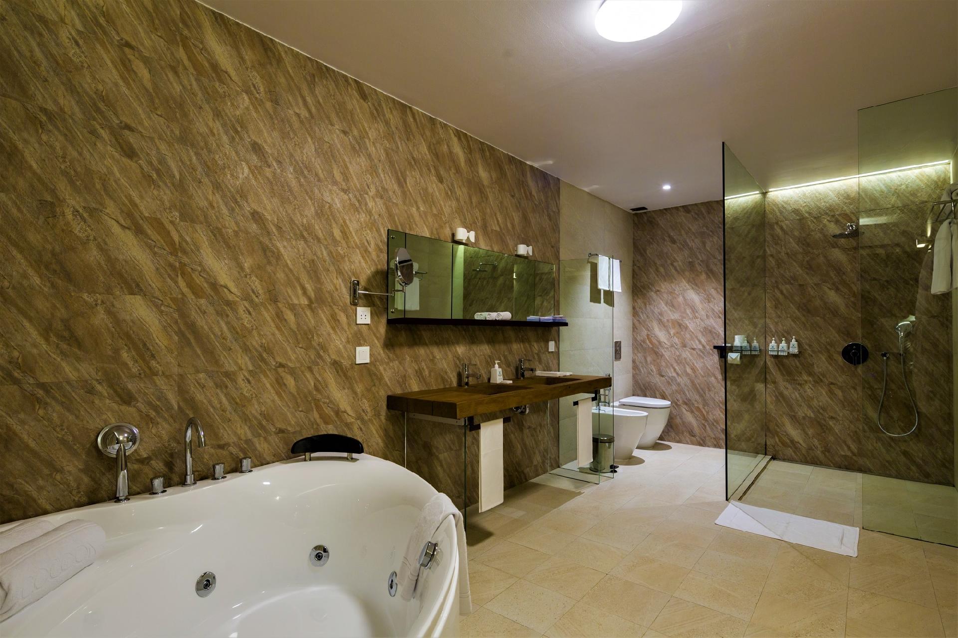 Priestranná suite priamo na morom s terasou s výhľadom na more. V spálni sa nachádza king-size posteľ a ďalšie štandardné vybavenie. Veľká kúpeľňa je vybavená presklenou sprchou, WC, bidetom, dvomi umývadlami a rohovou vaňou. Zo spálne aj z kúpeľne majú hostia prístup na terasu s ležadlami na opaľovanie a s posedením.
