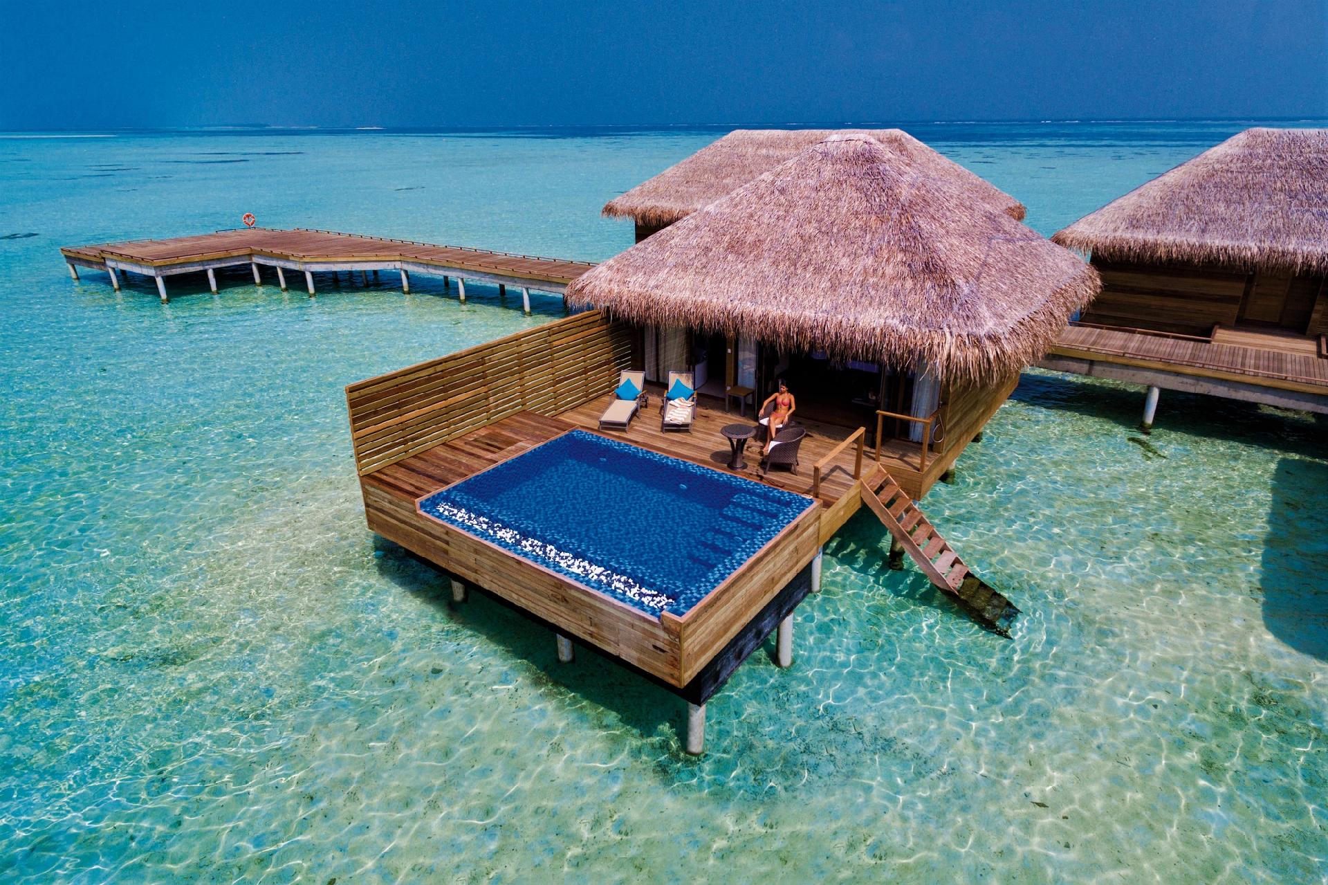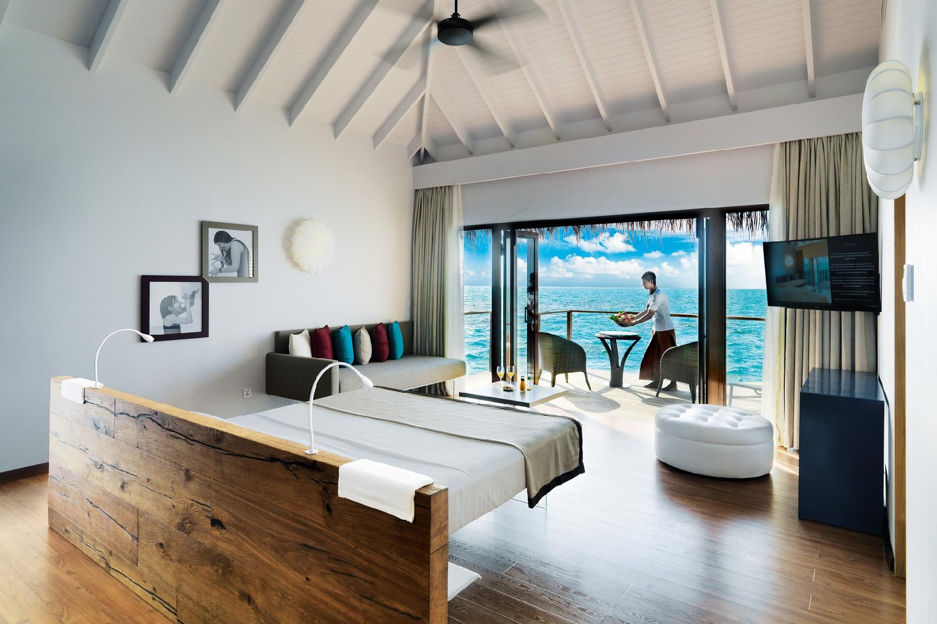 Vily priamo nad morom dostupné po drevenom móle. Ku každej vile patrí terasa s ležadlami na opaľovanie a s výhľadom na more. Vo vile sa nachádza spálňa s king-size posteľou a ďalším štandardným vybavením. Kúpeľňa je vybavená sprchou, WC, bidetom, dvomi umývadlami a županmi s papučami. Wi-Fi pripojenie je k dispozícii zdarma.