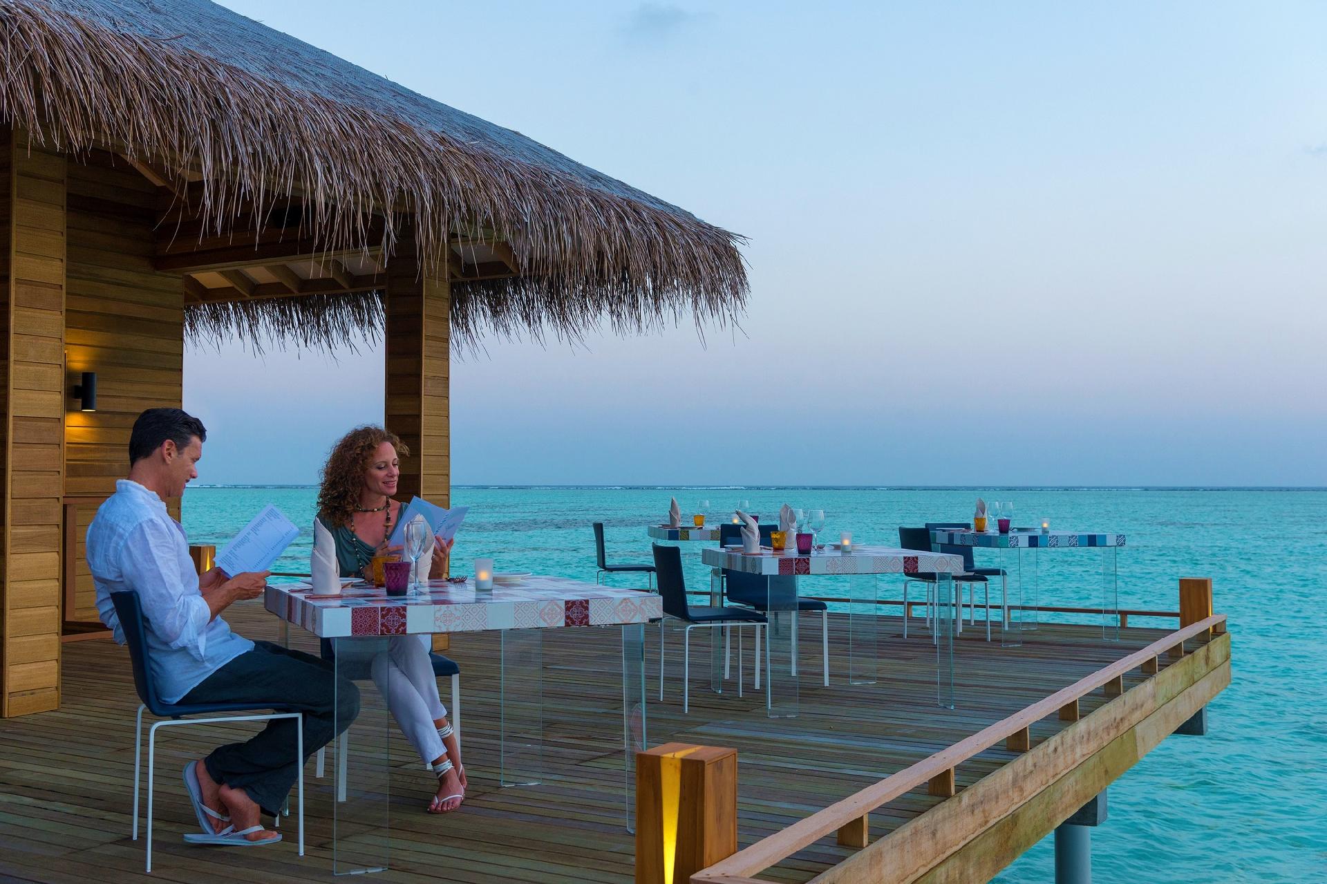 Poznámka: XXL All inclusive Package – prémiový program all inclusive za doplatok. Hostia majú výhody ako vstup do VIP Lounge pri prílete na Maledivy, prémiový obsah minibaru a vín, denné exkurzie, 20% zľava na SPA procedúry, romantická večera v Manta reštaurácii, BBQ večera na pláži.
