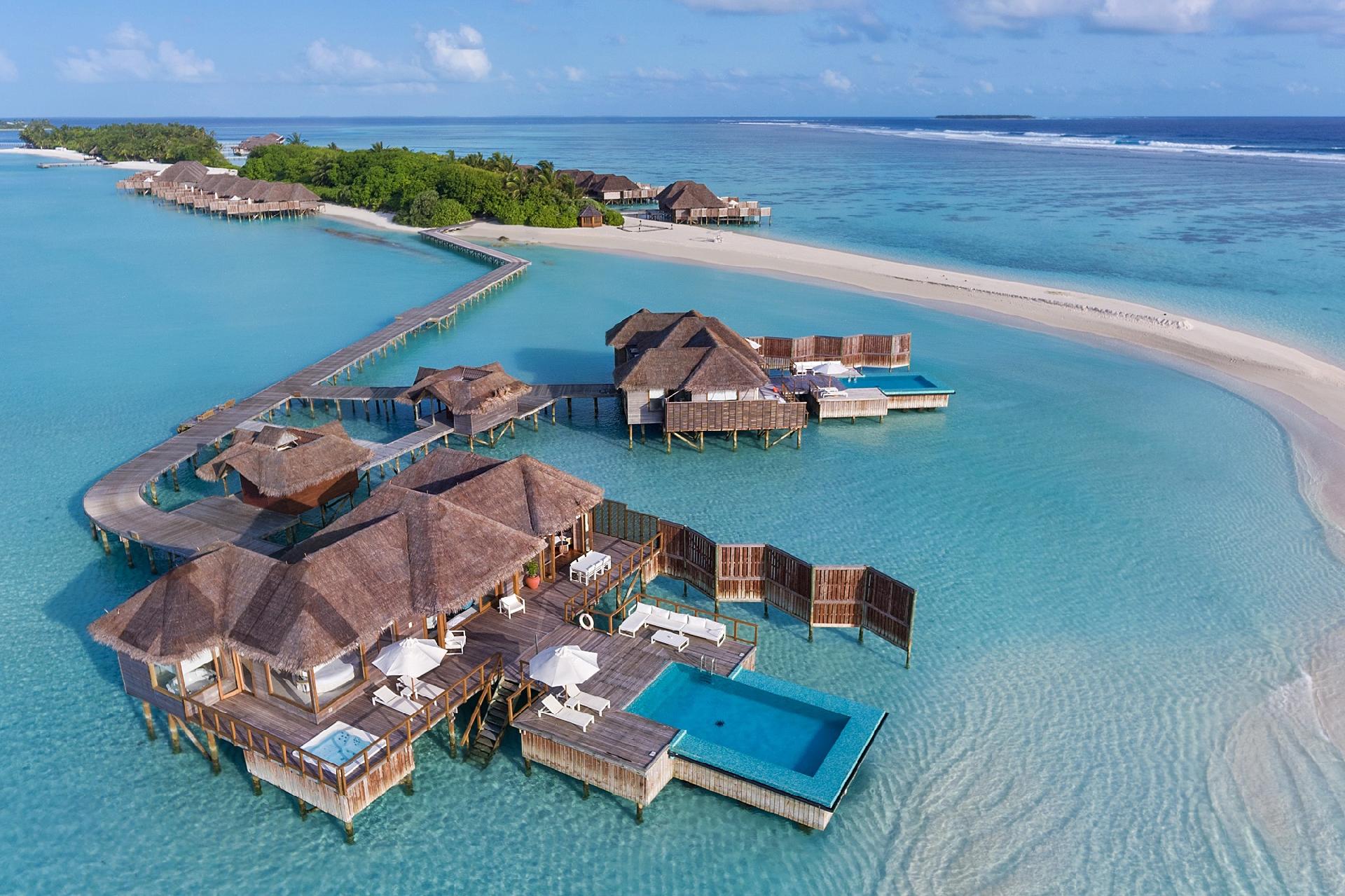 Jeden z najluxusnejších rezortov na Maledivách, vzdialenosť od letiska v Malé 100km, transfer 30 min. hydroplánom, 100 plážových viliek, 28 viliek nad vodou (za príplatok).