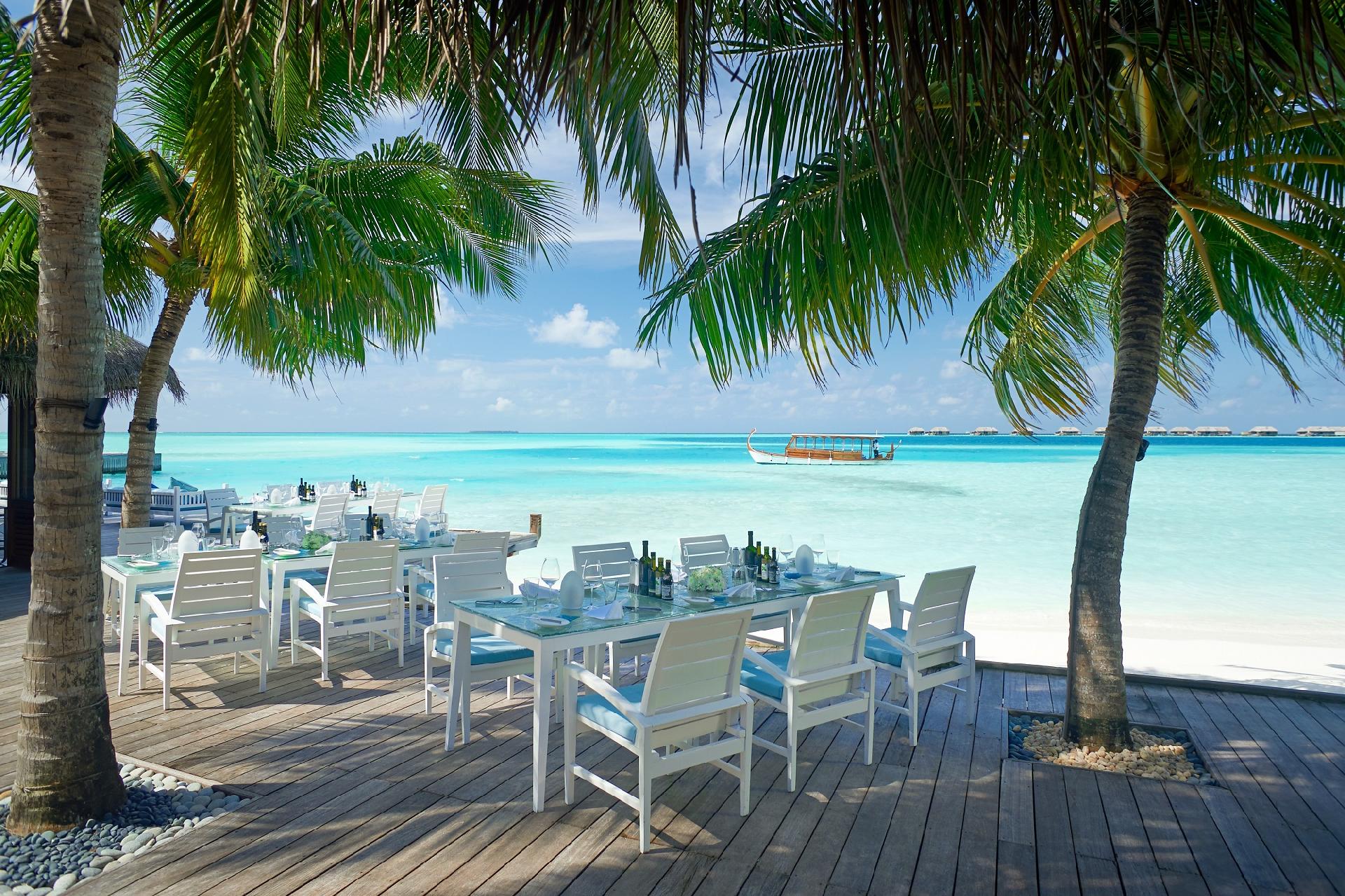 STRAVOVANIE: raňajky. Reštaurácie abary v resorte: Ufaa by Jereme Leung (ázijská, na pláži), Sunset Grill (50 m od pláže priamo nad morom), Koko Grill (japonská, priamo na pláži), Vilu Restaurant & Bar (raňajky, open-air, na pláži), The Quiet Zone (adults only bar), Rangali Bar (v blízkosti hlavmného bazéna), Cheese & Wine Bar (vináreň), The Wine Cellar (vínna pivnička), Atoll Market (raňajky a večere, bufetové stoly, bare-foot na pláži s pieskom), Ithaa Undersea Restaurant (5 metrov pod morskou hladinou, so sklenenými stenami), Mandhoo SPA Treatment (organic-based).