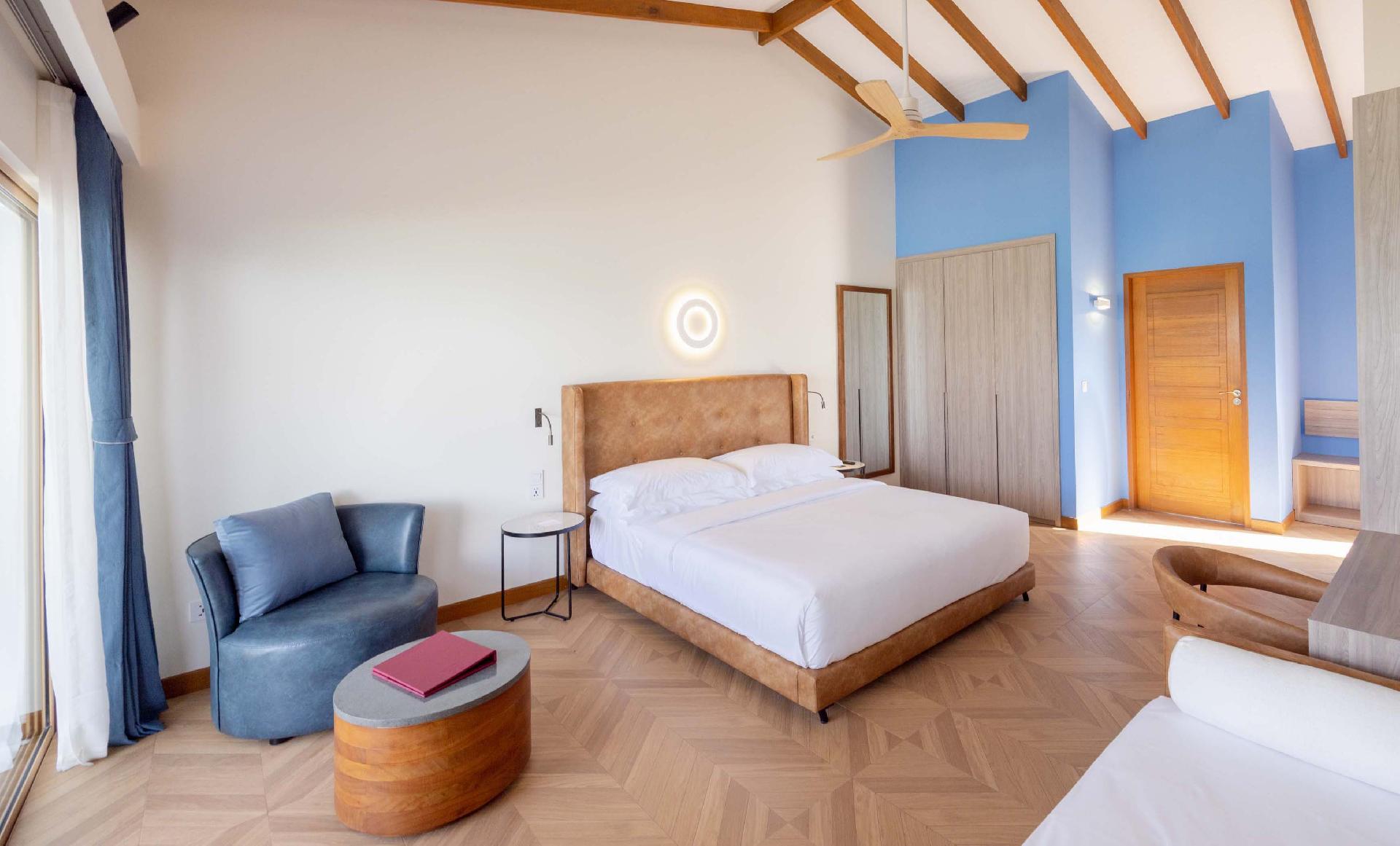 Vily se nacházejí na východní straně ostrova s úžasným výhledem na východ slunce. Součástí každé vily je typická maledivská venkovní koupelna pro autentický zážitek. Vybavení - koupelna s WC, minibar, trezor, klimatizace, fén, TV, telefon, Wi-Fi.