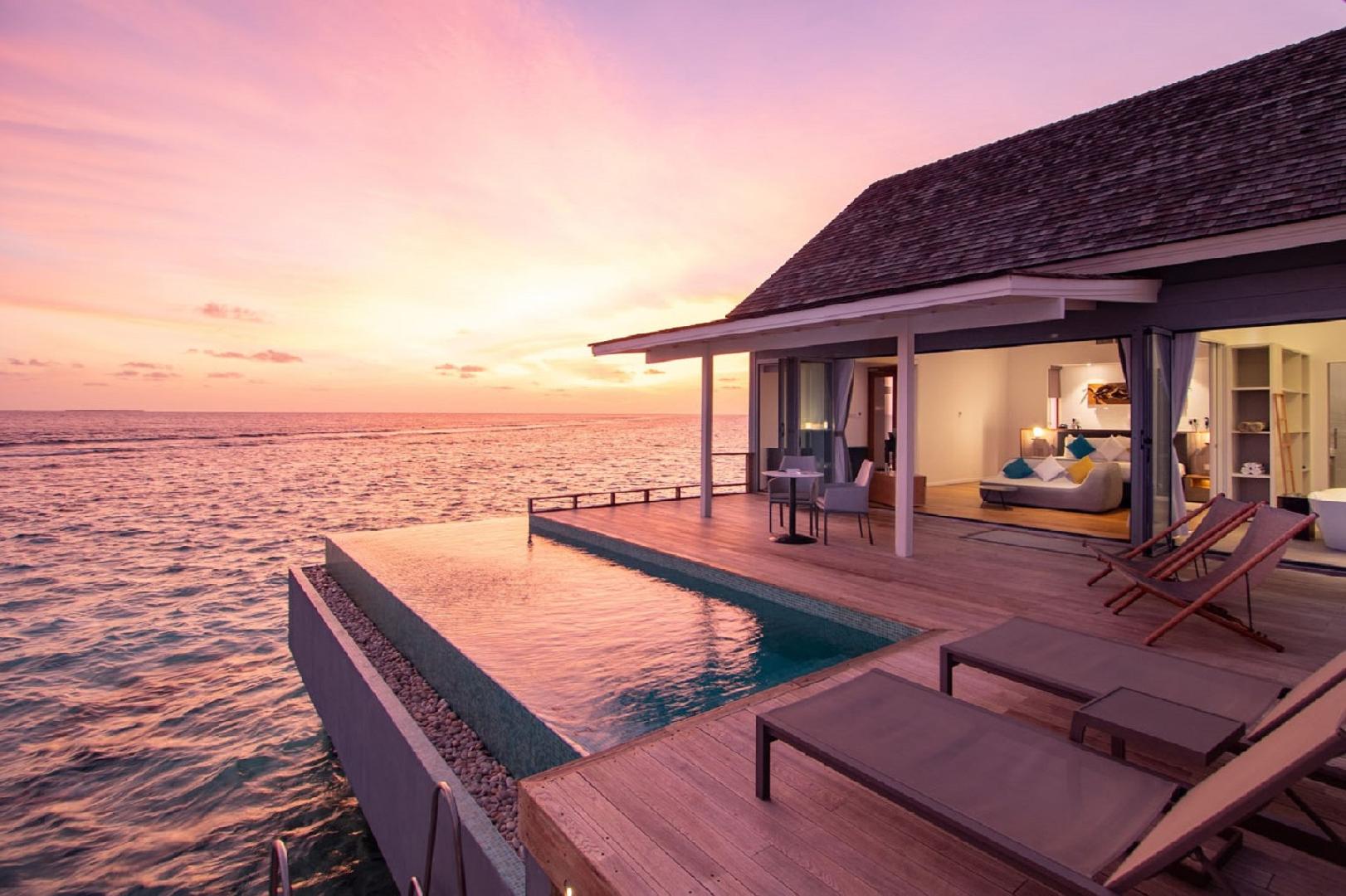 Villa priamo nad morom s vlastnou terasou a priamym vstupom do mora po schodoch. K vile patrí priestranná terasa s ležadlami, posedením a jedálenským stolom. Relax si užijete aj v 18 m2 privátnom bazéne. Vo vile sa nachádza king-size posteľ, minibar a vinotéka s 30 druhmi vína a kúpeľňa so samostatne stojacou vaňou. Nachádzajú sa na konci pieskového brehu Kuaramathi.