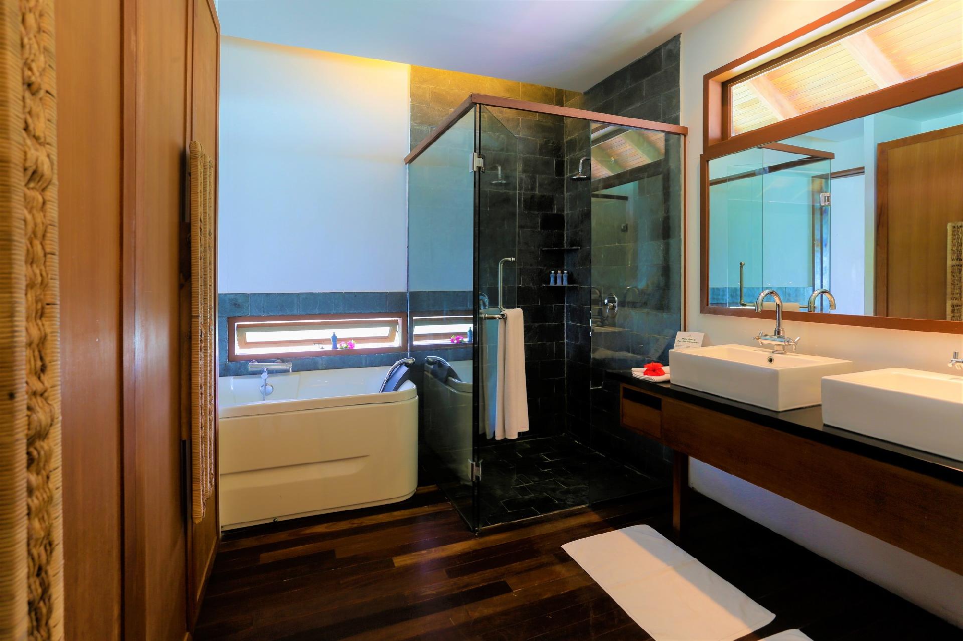 Priestranná vila ideálna pre rodiny či menšie skupiny. K dispozícii sú dve oddelené spálne s manželskými posteľami, písacím stolom a TV, každá s vlastnou zariadenou terasou a vlastnou kúpeľňou. Tá je vybavená uzavretým WC a open-air časťou s dvomi umývadlami a sprchou v súkromnej záhradke. Na terase je k dispozícii posedenie a pohovka, pre vilou aj ležadlá na opaľovanie.