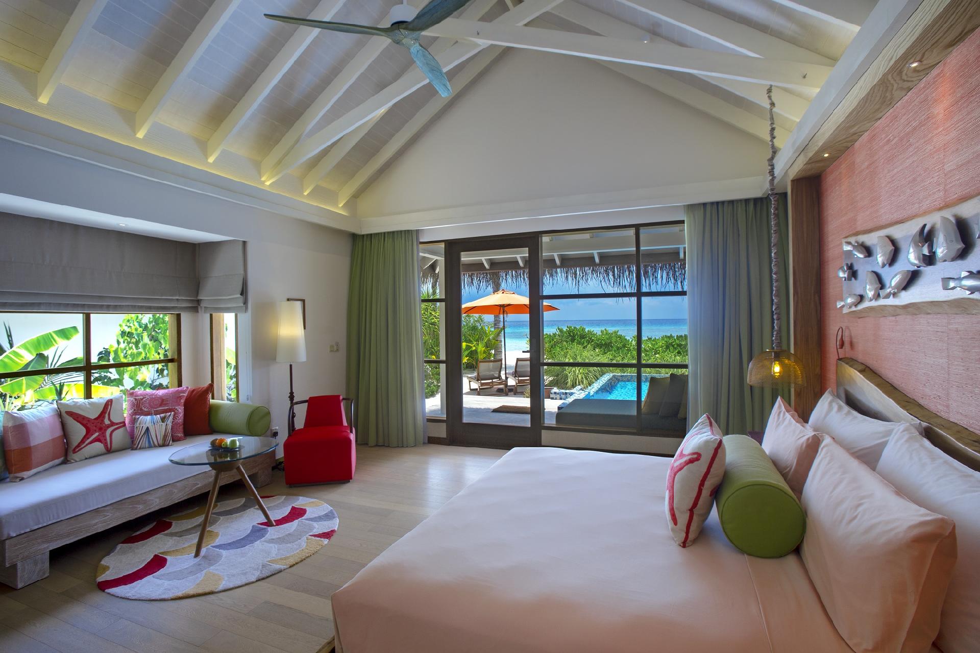 Vily s privátnym 13 m2 bazénom sa nachádzajú priamo na pláži s bielym pieskom a len pár krokov od tyrkysového mora. Izby sú zariadené v modernom štýle v príjemných farbách a prímorskom štýle. Každá vila je vybavená veľkou open-air kúpeľňou so samostatne stojacou vaňou, sprchou, dvomi umývadlami a WC.