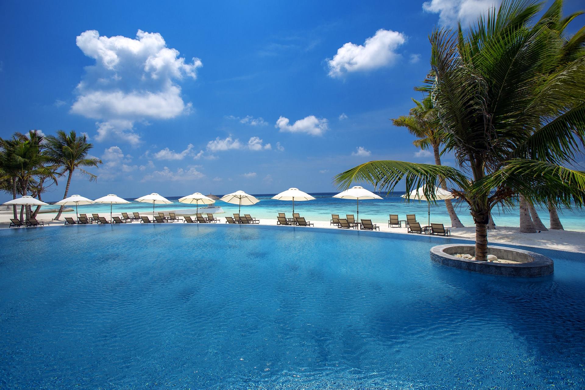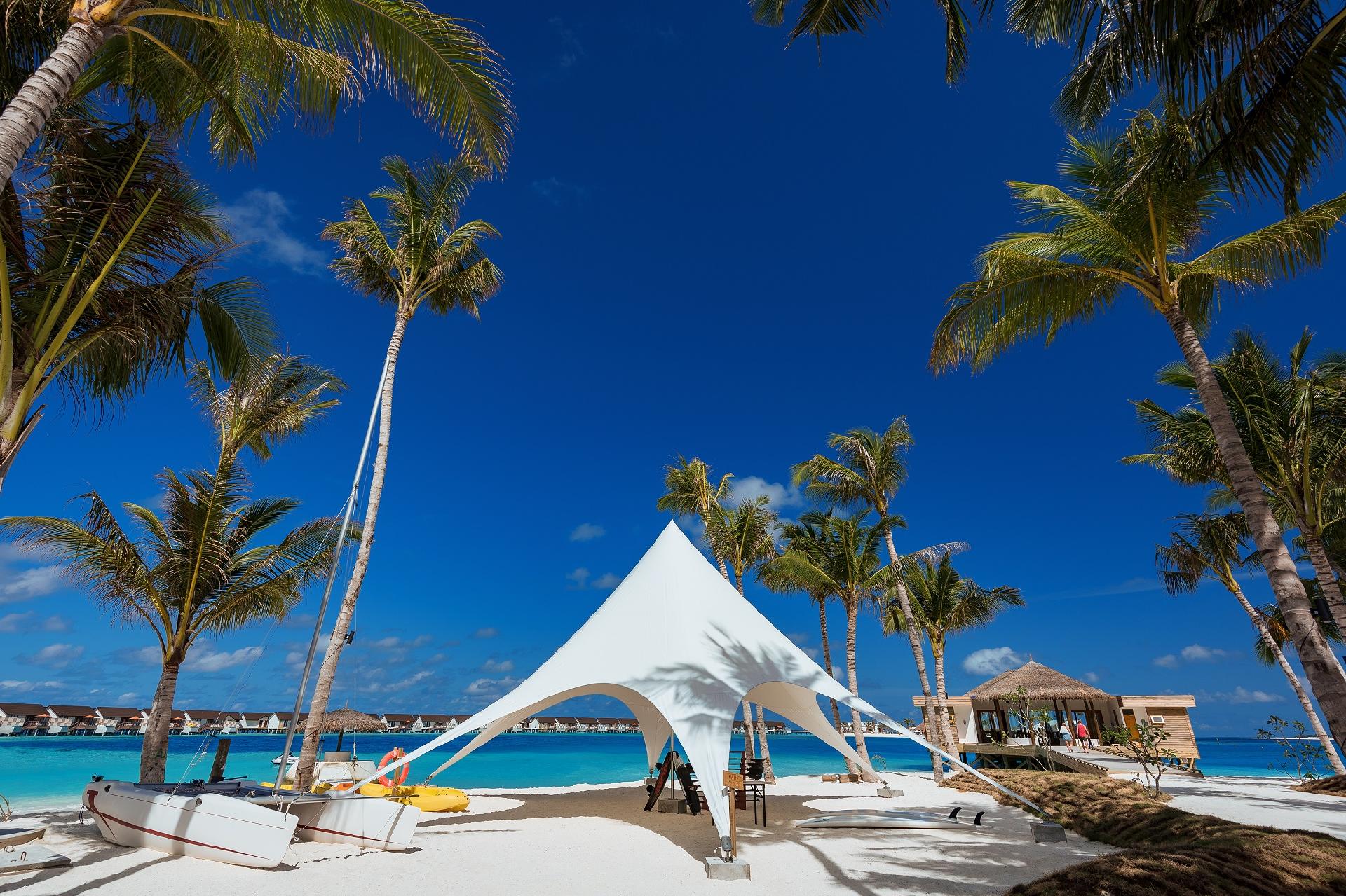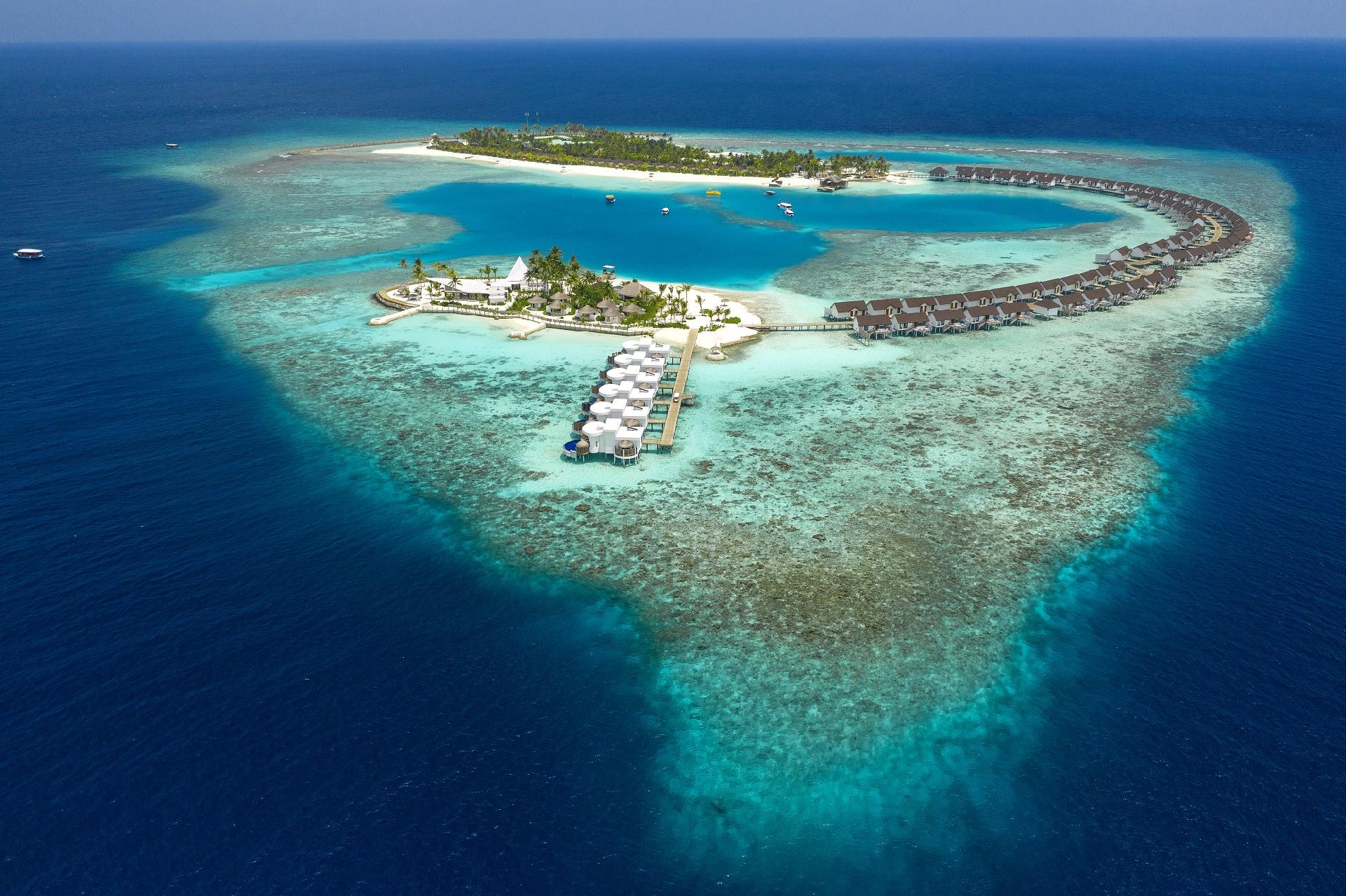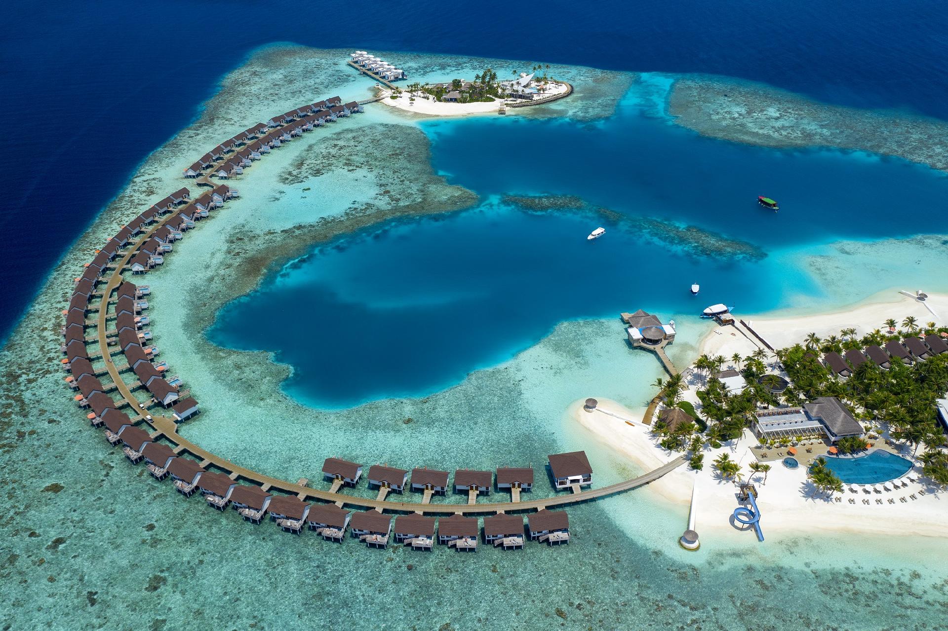 Vybavenie izieb: king-size posteľ, TV, minibar, set na prípravu kávy a čaju, trezor, Wi-Fi pripojenie a klimatizácia. Niektoré typy izieb majú aj jacuzzi alebo privátny bazén. V rezorte sa nachádza 39 Beach Villas, 14 Deluxe Beach Pool Villas, 7 Two-Bedroom Beach Pool Suites, 45 Water Villas, 26 Deluxe Overwater Pool Villa a 6 Suite pre novomanželov.