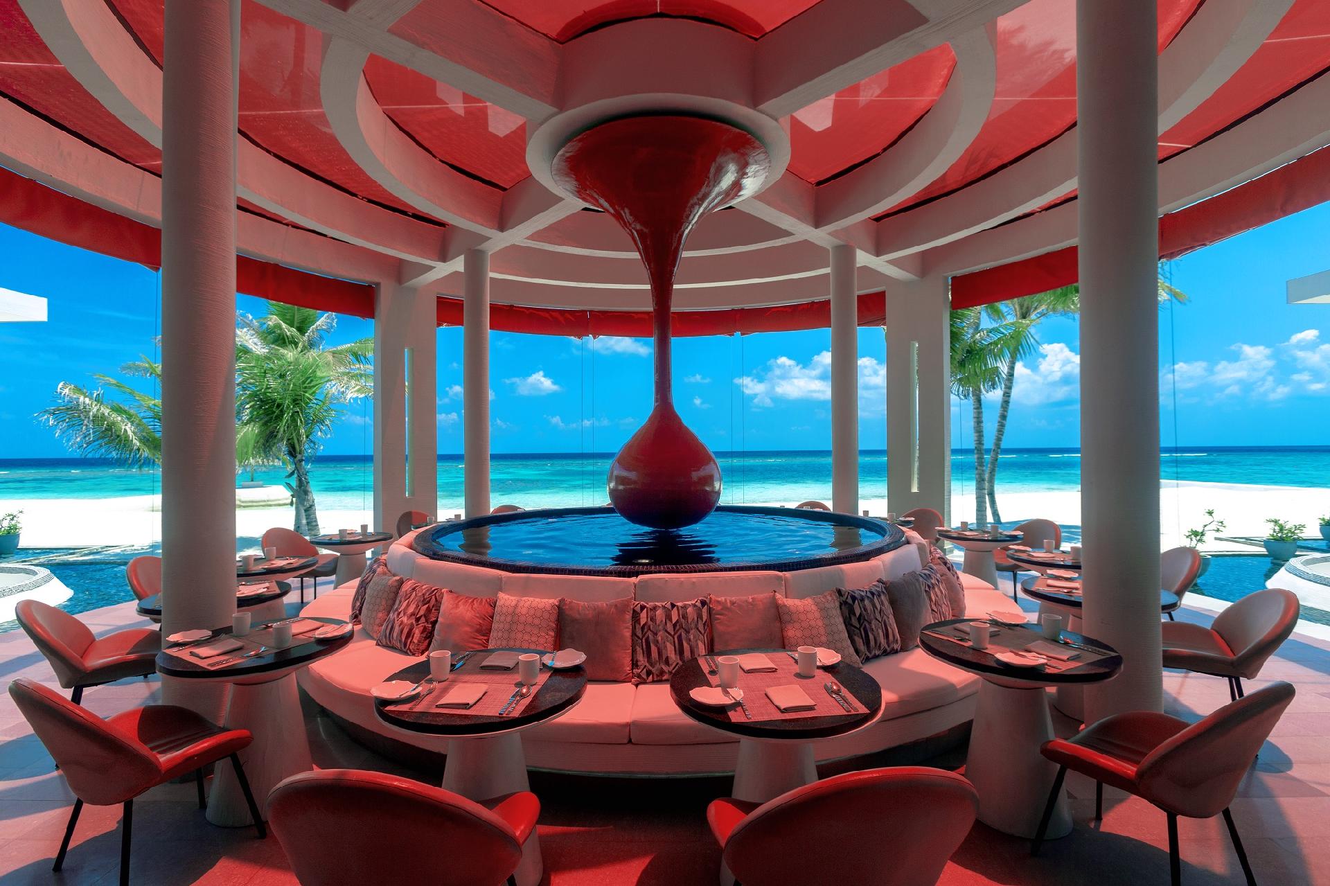 Stravovanie: all inclusive. Reštaurácie a bary v rezorte: The Countryyard (hlavná bufetová reštaurácia, každý piatok „Indian Ocean Gala Dinner“), Hedhikaa Hut (snacky v čase 16:00 – 18:00), Simply Veg (gurmánska, vegetariánska), Just Grill (grilované špeciality z mäsa a morských plodov), The Sangs Bar (hlavný bar s ponukou koktejlov), One Banyan Bar, The Rock (ponuka nealko nápojov, koktejly podľa dennej ponuky, pivá a vína).