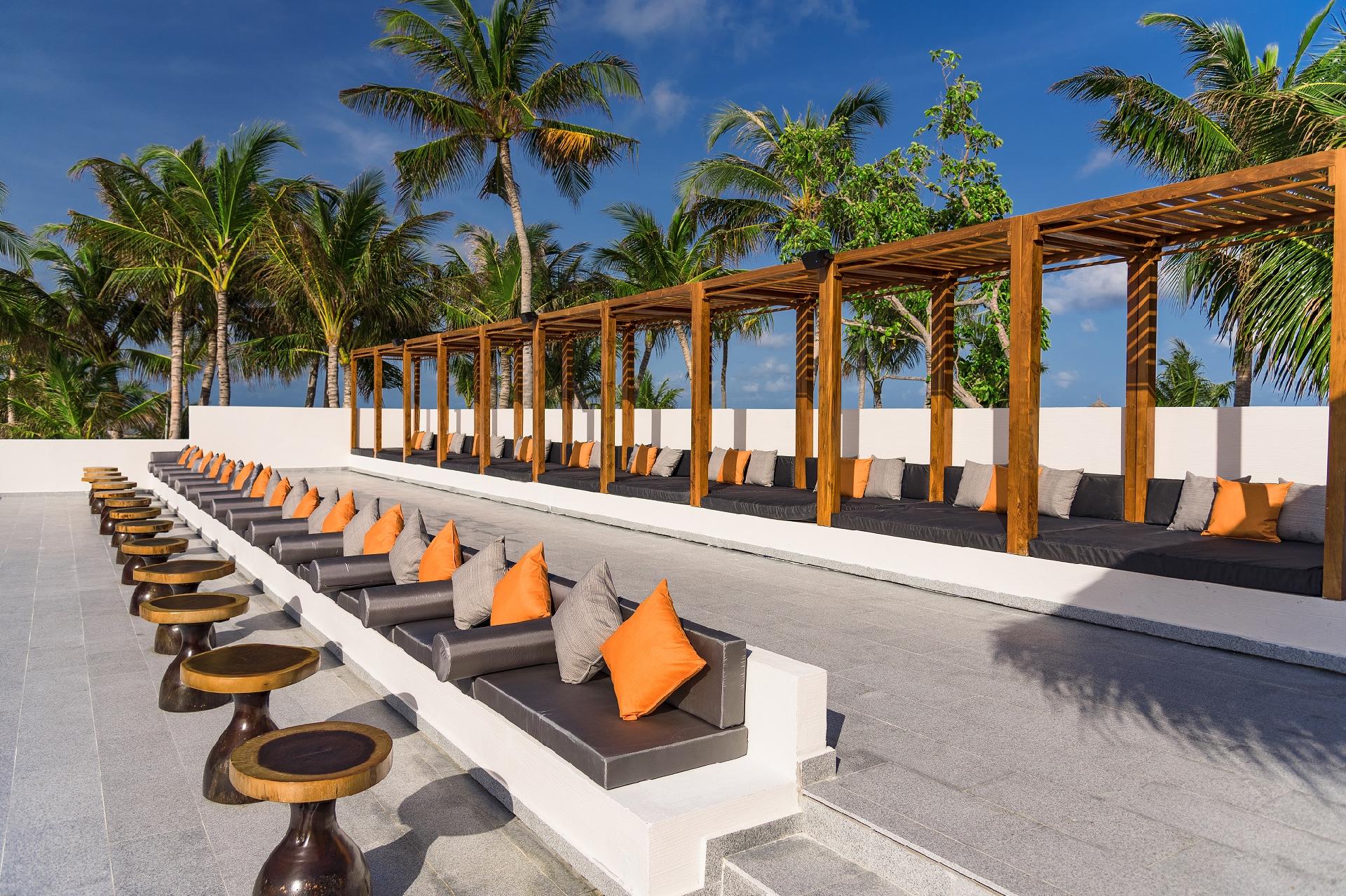Vily priamo na pláži s bielym pieskom a len pár krokov od tyrkysového mora. Izby sú zariadené v modernom štýle v príjemných farbách a prímorskom štýle. Každá vila je vybavená veľkou open-air kúpeľňou so samostatne stojacou vaňou, sprchou, dvomi umývadlami a WC.