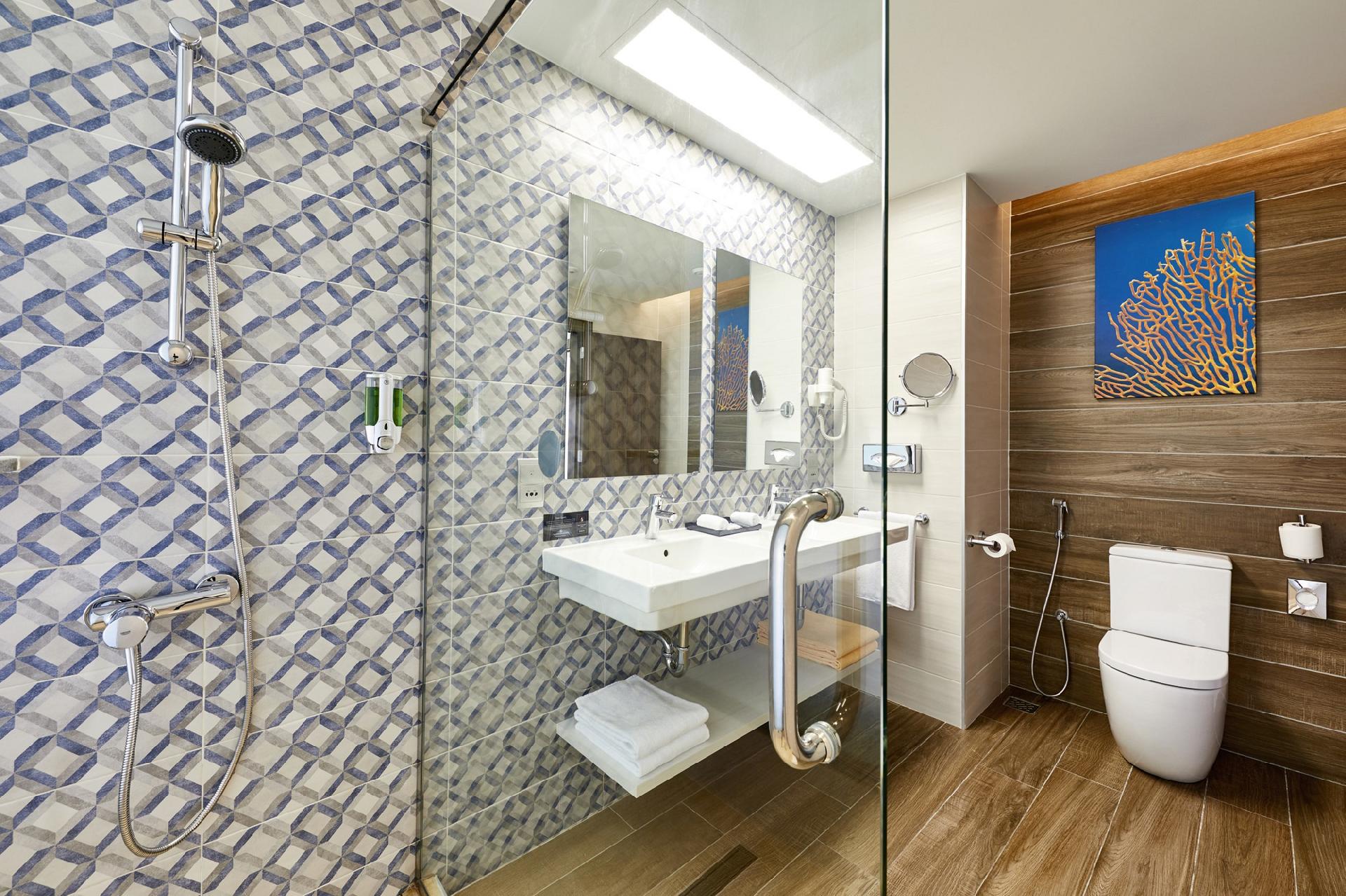 Vybavenie izieb: 264 izieb typu Standard, Beach, Water Junior Suite a Water Superior Junior Suite majú kúpeľňu s WC, sušič vlasov, minibar, trezor, klimatizáciu, stropný ventilátor, rýchlovarnú kanvicu, SAT-TV, Wi-Fi, telefón, balkón alebo terasu. V základnej cene je izba typu Standard.