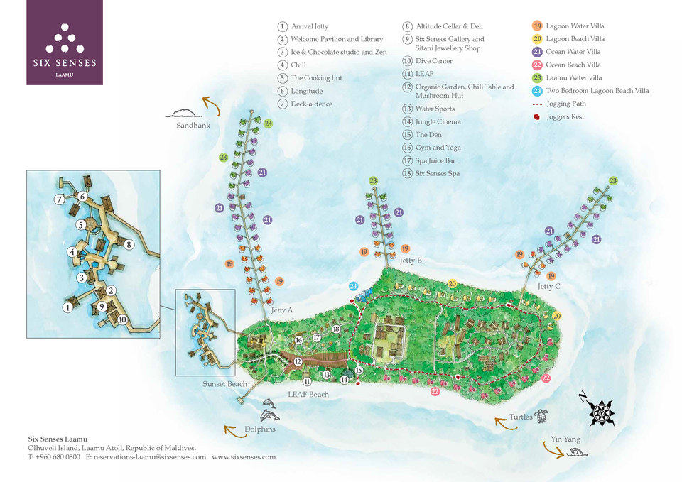 Tento ekorezort postavený z prírodných materiálov, ale luxusný vo všetkých smeroch sa nachádza 260 km od letiska v Male, transfer vnútroštátnym lietadlom 50 minút a následne 25 minút rýchlou loďou. Ponúka ubytovanie v 27 plážových a 70 vodných vilách, ktoré sú navrhnuté tak, aby poskytovali dostatok súkromia a maximálny komfort.