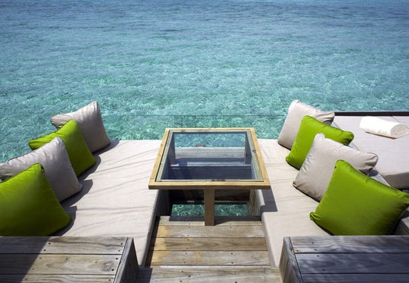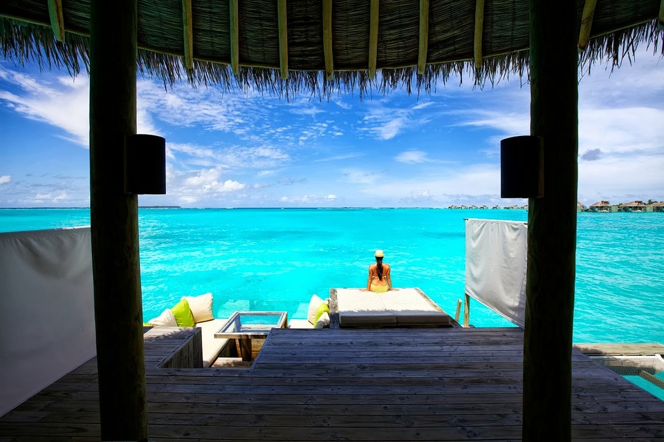 Vodní vilka s výhledem na oceán disponuje relaxační terasou s lehátky, pohodlnou válendou a sítí nad vodní hladinou. Nachází se daleko od ostrova a je dekorována v přírodním stylu. Má krásný skleněný jídelní stůl, zapuštěnou prosklenou vanu a soukromou vodní zahradu. Ložnice je vybavena manželskou postelí nebo dvěma oddělenými lůžky.
