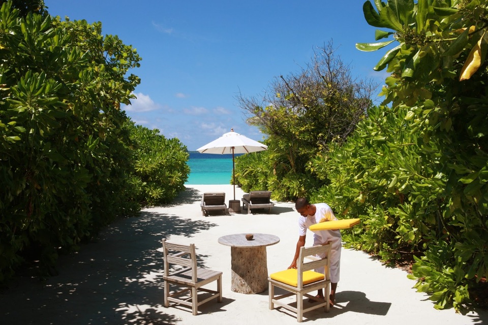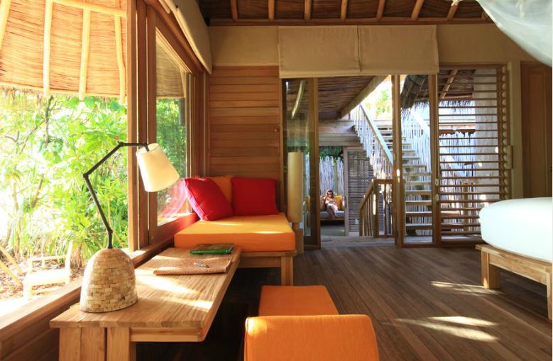• tento ekorezort postavený z prírodných materiálov, ale luxusný vo všetkých smeroch sa nachádza 260 km od letiska v Male, transfer vnútroštátnym lietadlom 50 minút a následne 25 minút rýchlou loďou. Ponúka ubytovanie v 27 plážových a 70 vodných vilách, ktoré sú navrhnuté tak, aby poskytovali dostatok súkromia a maximálny komfort.