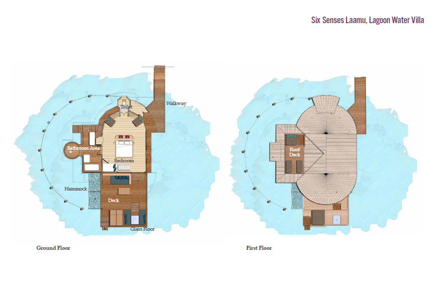 Romantická vilka postavená na kůlech nad lagunou je s ostrovem spojená pomocí dřevěného mola. Je ideální k relaxaci na pohodlných lehátkách na soukromé verandě nebo v sítích nad vodní hladinou. Bambusová střecha, skleněný jídelní stůl a prosklená vana s výhledem na oceán vytváří přirozenou harmonii s okolním prostředím. Součástí je také manželská postel nebo dvě oddělená lůžka, soukromá vodní zahrada a pohodlná válenda.