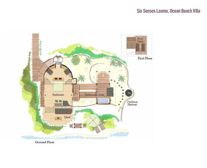 Podobně jako předchozí typ vily, i tato plážová vilka je situována v tropické zahradě a má přímý přístup k soukromé pláži u břehu oceánu. Disponuje vyhlídkovou terasou, verandou s pohodlnými lehátky a venkovní otevřenou sprchou s bambusovými stěnami. Je vybavena manželskou postelí nebo dvěma oddělenými lůžky.