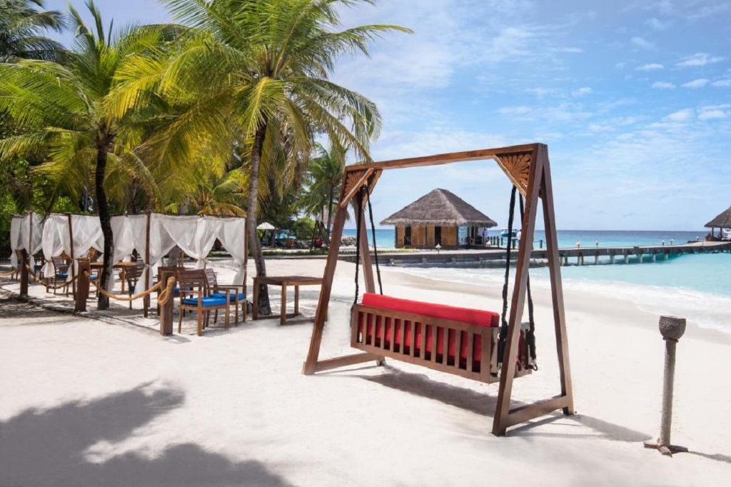 POPIS: ide o jedno z najluxusnejších stredísk na Maldivách (600 m x 450 m), vhodné pre zaľúbených, ale aj pre rodiny s deťmi. Je snom pre potápačov – má vlastný útes a vrakom, ktorý je potrebné preskúmať. Pre tých, ktorí dávajú prednosť pevnine, bielym pieskom a kokosovým palmám ponúka fascinujúci pohľad na lagúnu s vodnými vilami. Pozostáva z 30 viliek na pláži a 32 vodných bungalovov. Od letiska v Male je vzdialený 32 km, k rezortu sa dostanete motorovým člnom za cca 50 minút.