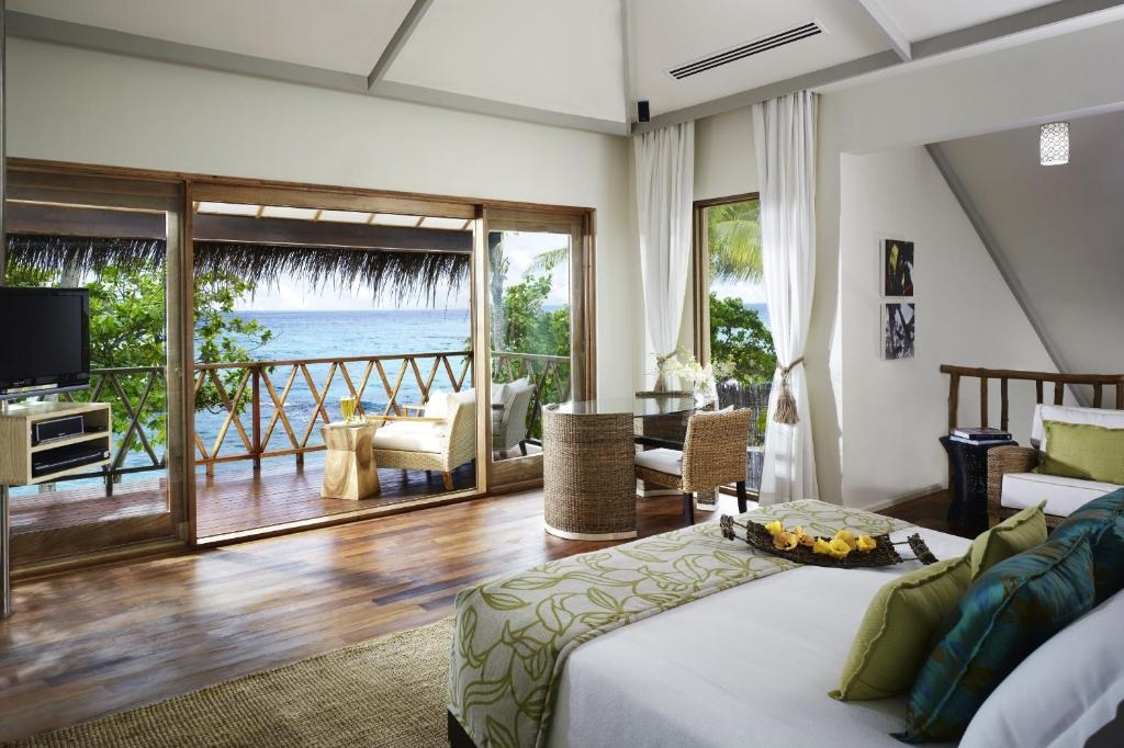 Deluxe Beach Villas sa nachádza priamo na pláži v výhľadom na more. Maximálna obsadenosť sú dvaja dospelí a jedno dieťa. Vybavenie izby: king-size posteľ, trezor, TV, iPod dock, kúpeľňa so sprchou, set na prípravu kávy a čaju, minibar a zariadená terasa s jedálenským stolom.
