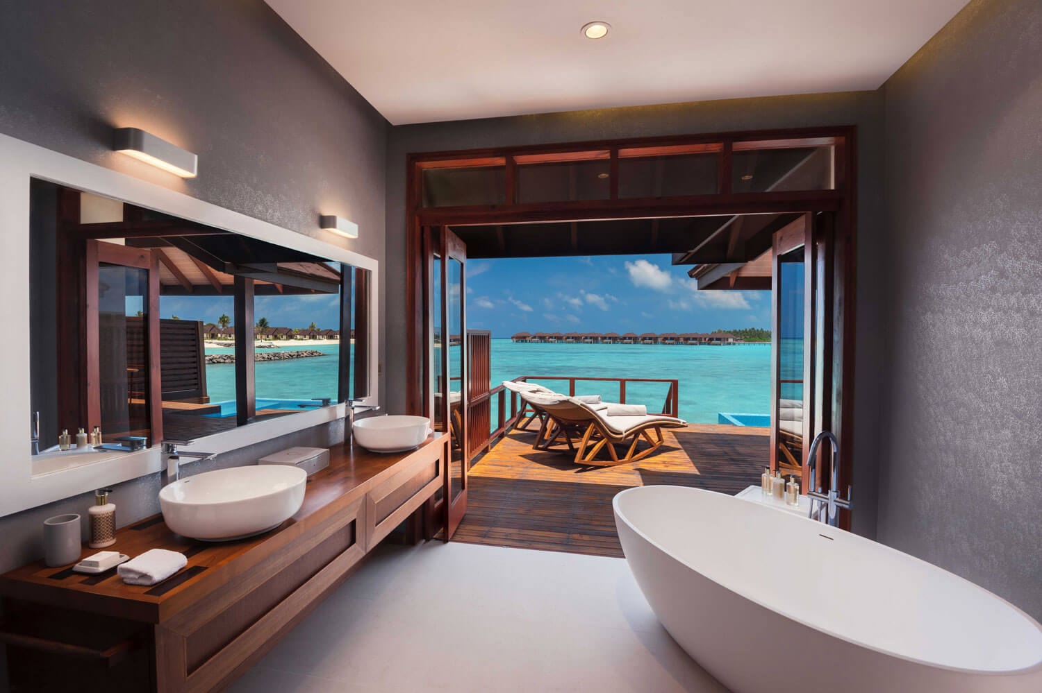 Priestranné suity priamo nad morom s oddelenou spálňou a obývacou časťou. V spálni sa nachádza veľká manželská posteľ, pohovka, TV a šatník. V obývacej časti je umiestnená pohovka, TV a minibar. Kúpeľňa je vybavená sprchou, WC, dvomi umývadlami a samostatne stojacou vaňou. Zo všetkých 3 miestností majú hostia prístup na veľkú terasu s ležadlami na opaľovanie, pohovkou, privátnym bazénom a schodíkmi do mora.