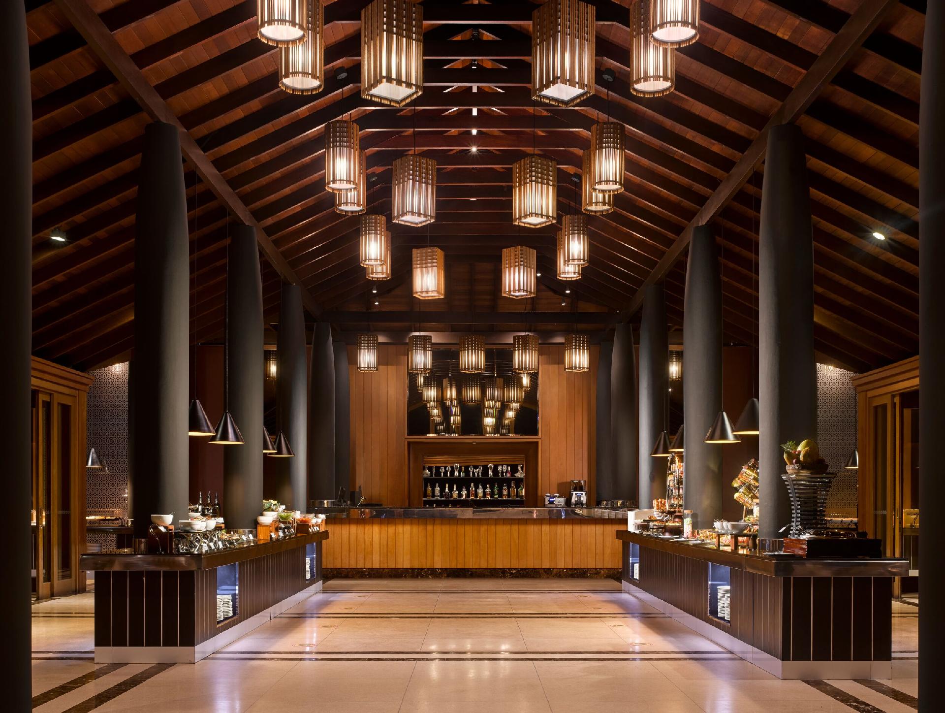Stravovanie: plná penzia, All Inclusive (za príplatok) – raňajky (kontinentálne a anglické raňajky doplnené variáciami z ázijskej a maldivskej kuchyne), obedy, večere formou bufetu, celodenné občerstvenie, nealko nápoje, základný výber alkoholických nápojov - v hlavnej reštaurácii Bageecha. V resorte sa ďalej nachádzajú tieto reštaurácie a bary: Farumathi (čerstvé morské plody a homáre), Fukuya Teppanyaki (japonská, sushi), Ristorante Al Tramonto (talianska), Lagoon Restaurant (pre hostí z Water Villas, rezervácie vopred) a Athiri Bar (hlavný bar, pri bazéne, s výhľadom na oceán, večer živá hudba/DJ).