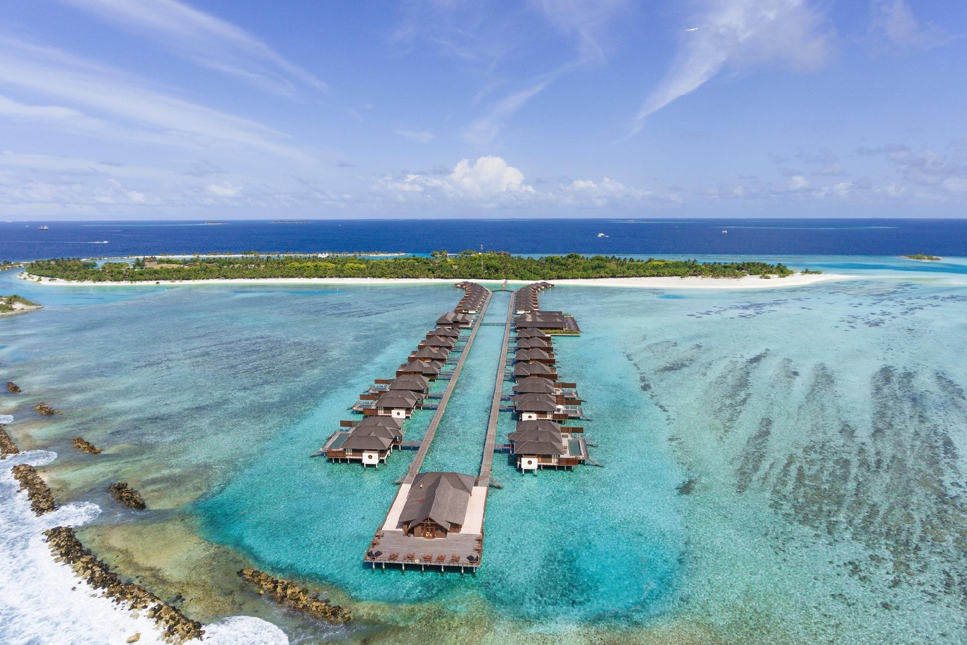 Popis: príjemný rezort (930 x 200 metrov) s 240 plážovými bungalovmi a 40 vodnými bungalovmi sa nachádza vo východnej časti severného atolu Malé. Vzdialenosť 10 km z letiska v Malé, transfer 20 minút rýchloloďou.