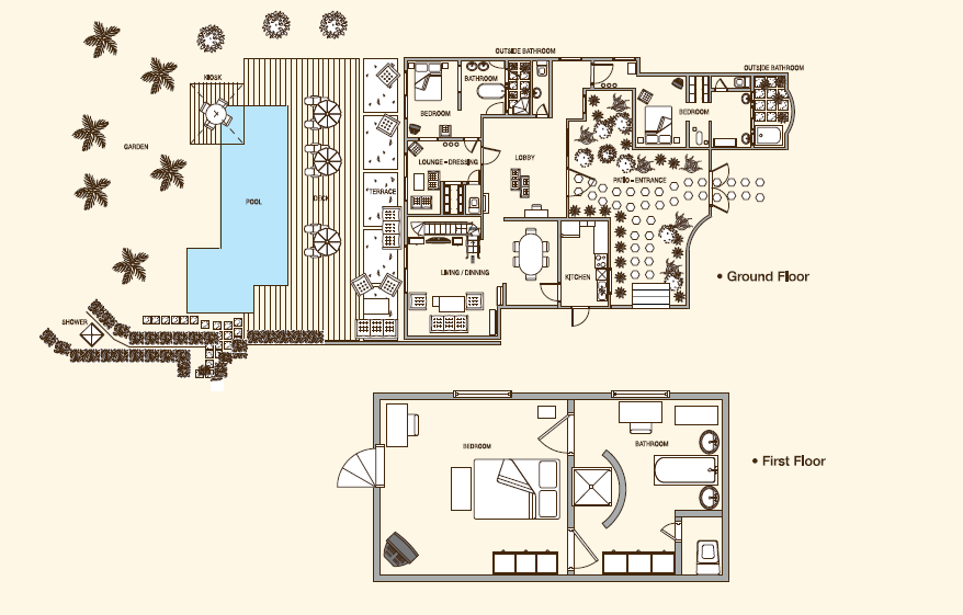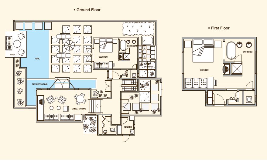 2 unikátne dvojposchodové vily s bazénom Vám poskytnú úplný pokoj a súkromie. Je ideálny pre pobyt s rodinou, pretože zahŕňa tri samostatné spálne, obývaciu izbu a vonkajší jedálenský priestor. Relaxovať tu môžete na slnečných ležadlách vo vlastnej záhrade. K dispozícii je Vám tiež osobné komorník a vysokorýchlostný internet. K vybaveniu patrí SAT LCD TV v každej miestnosti, iPhone dock, DVD/CD prehrávač, PlayStation, trezor, telefón a kávovar značky Nespresso. V každej kúpeľni nájdete vaňu, sprchový kút, župany, papuče, značkovú kozmetiku a fén na vlasy. Ubytovanie je možné pre 6 dospelých osôb a 3 deti.