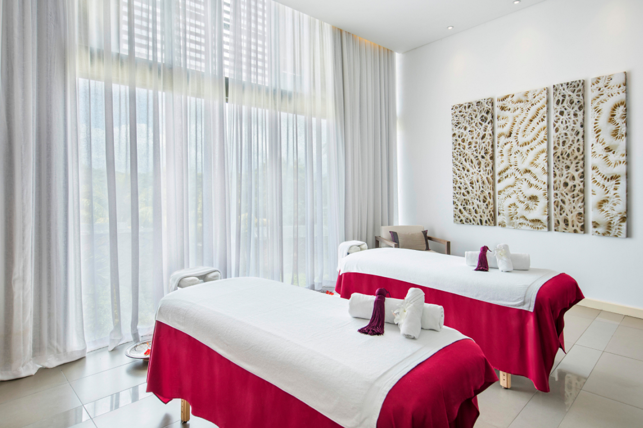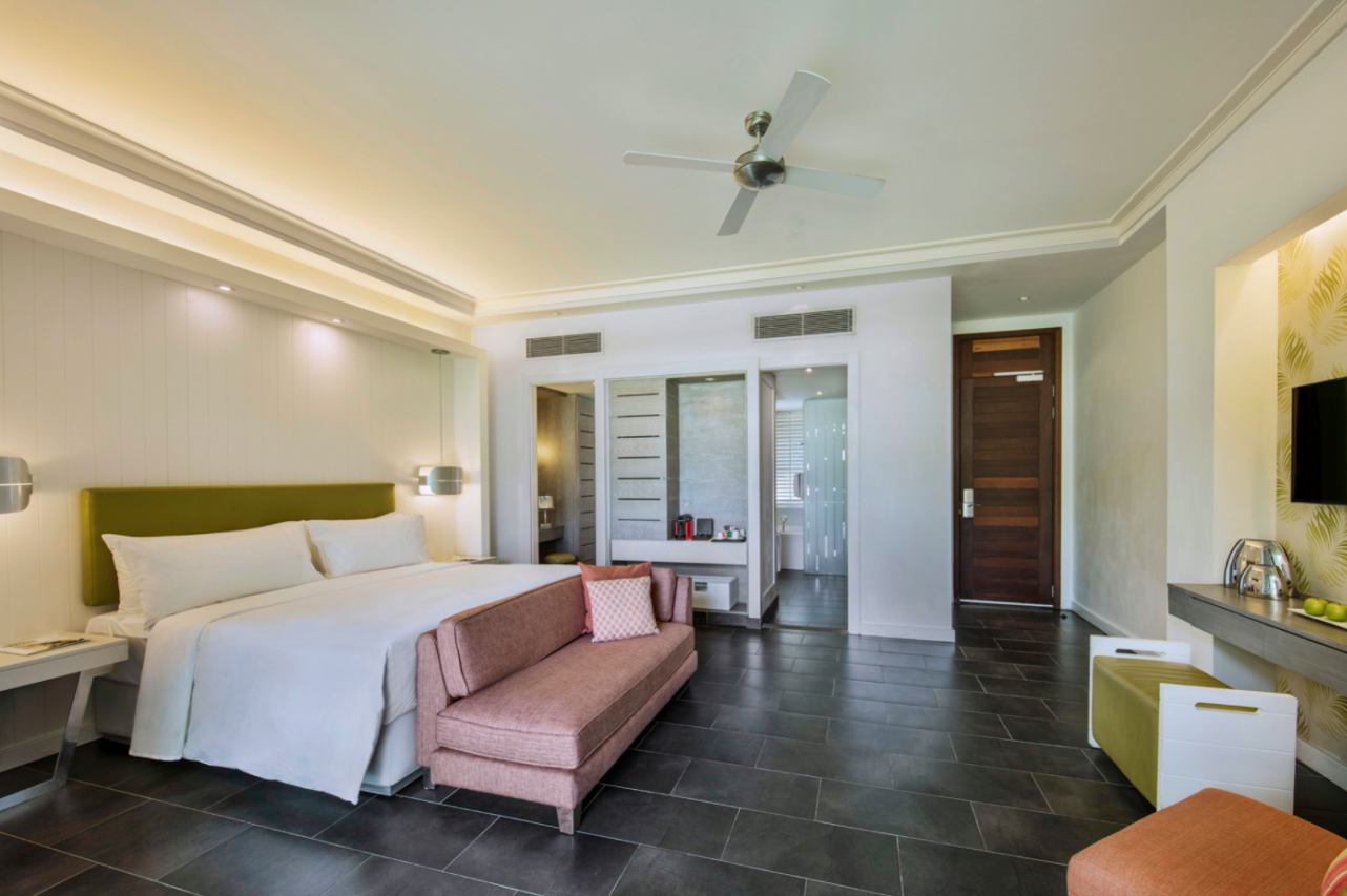 Moderne a elegantne zariadené izby sa nesú v sviežich svetlých farbách pre dokonalý zážitok z dovolenky. Izby sa nachádzajú v prvom rade plážových domčekov buď na prízemí s terasou alebo na poschodí s balkónom a sedením a výhľad. Hostia majú výhľad na Indický oceán a k dispozícii privátne časť pláže a vyhradenú lagúnu na kúpanie. K vybaveniu patrí 42' SAT LCD TV, Wi-Fi, minibar, rádio, budík, trezor, telefón a set na prípravu čaju/kávy, kúpeľňu s vaňou, sprchou, dvoma umývadlami, fénom, značkovou kozmetikou a samostatným WC. Ubytovanie je možné pre 3 dospelé osoby alebo 2 dospelé osoby a 2 deti.