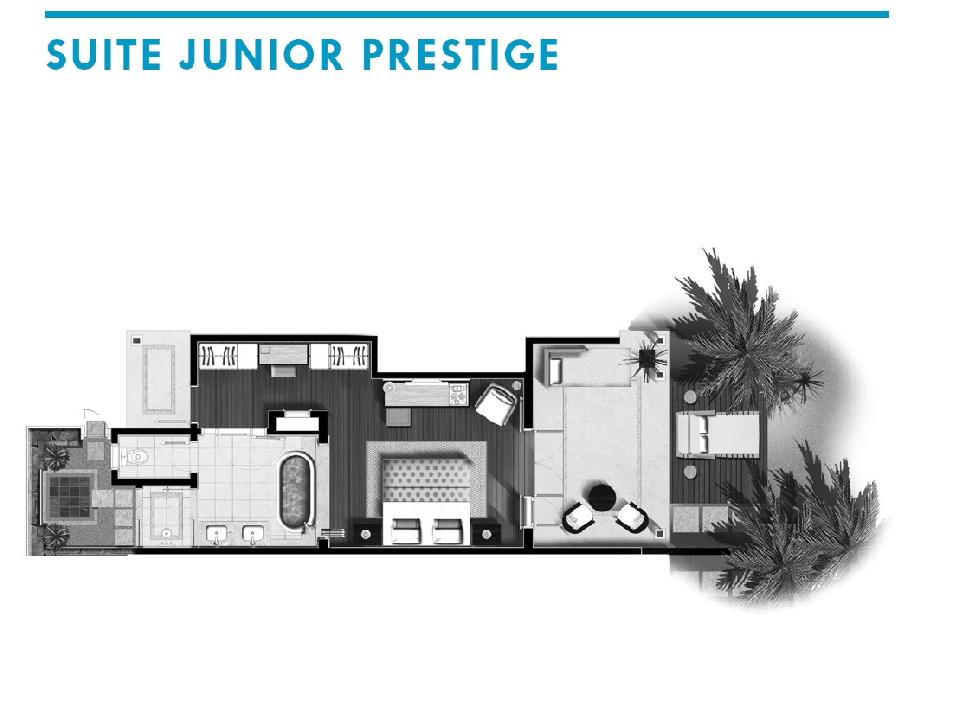 10 priestranných apartmánov je ideálnych pre rodiny, pretože disponuje dostatkom miesta pre ubytovanie dvoch dospelých a jedného dieťaťa. Pre väčšie skupiny je tu možnosť prepojenia dvoch susedných apartmánov. Spálňa s manželskou posteľou má výhľad na slnečnú terasu a tropickú záhradu. K vybaveniu parí SAT LCD TV, DVD prehrávač, Wi-Fi, trezor, telefón a set na prípravu čaju a kávy. Izby majú mramorovú kúpeľňu s vírivou vaňou, sprchovým kútom, WC, bidetom, županmi, papučami a značkovými toaletnými potrebami. Na požiadanie je k dispozícii aj iPod dokovacia stanica. Ubytovanie je možné pre 3 dospelé osoby alebo 2 dospelé osoby a 1 dieťa.