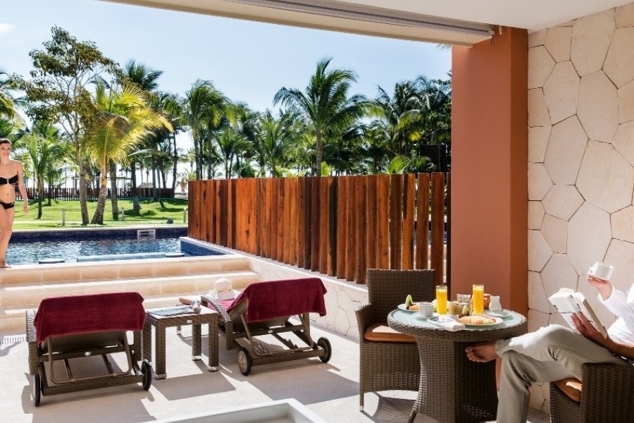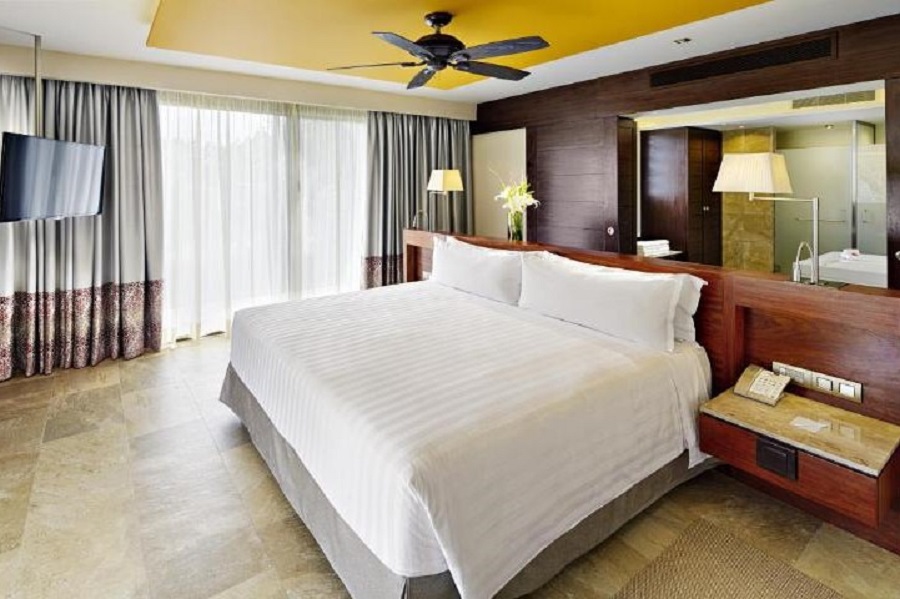 Izby Junior Suite Ocean Front Premium Level pozostávajú z kúpeľne s WC, spálne s posteľou typu King size/2 Queen beds posteľami a 2 gaučami a balkónu/terasy s vírivkou. V izbe je k dispozícii klimatizácia, budík, TV, telefón, minibar, kávovar, papuče a župan, trezor (za poplatok) a Wi-Fi pripojenie zdarma. Hostia môžu využívať špeciálne výhody programu Premium Level, ako napr.: personalizovaný check-in a check-out v Premium zóne, concierge service, izby s najlepším výhľadom, plážové uteráky, VIP minibar, služba rozostielania postele, prístup do Premium lounge, zľavy na Spa a ďalšie. Na izbe je možné ubytovať 3 dospelé osoby a 2 deti.